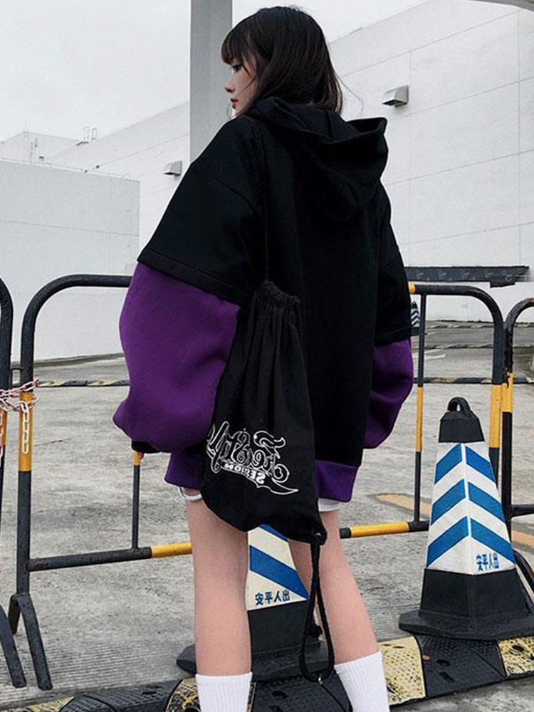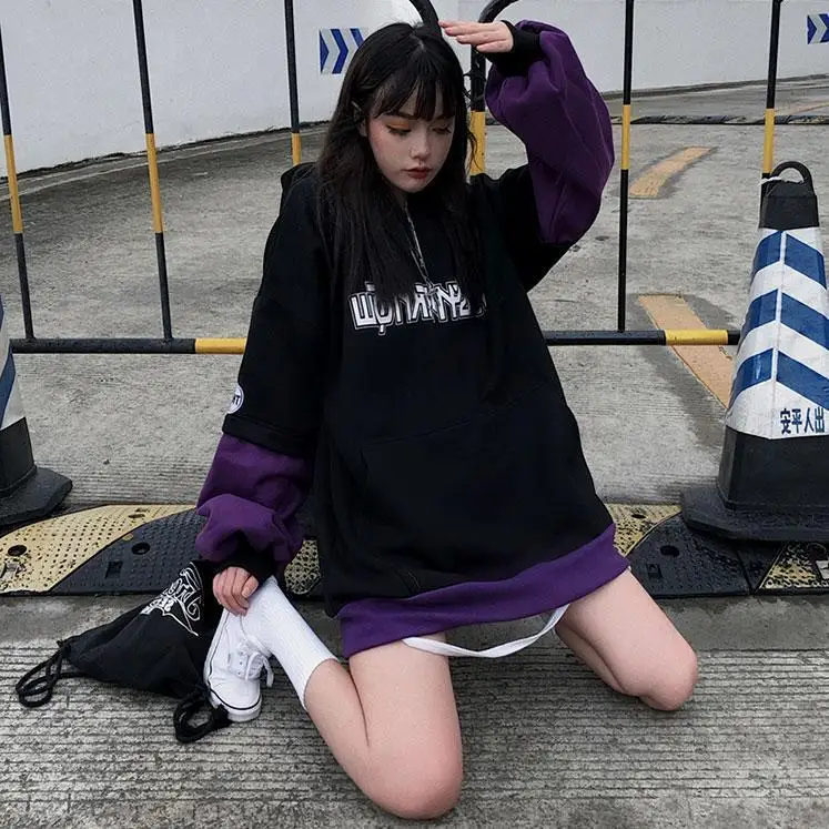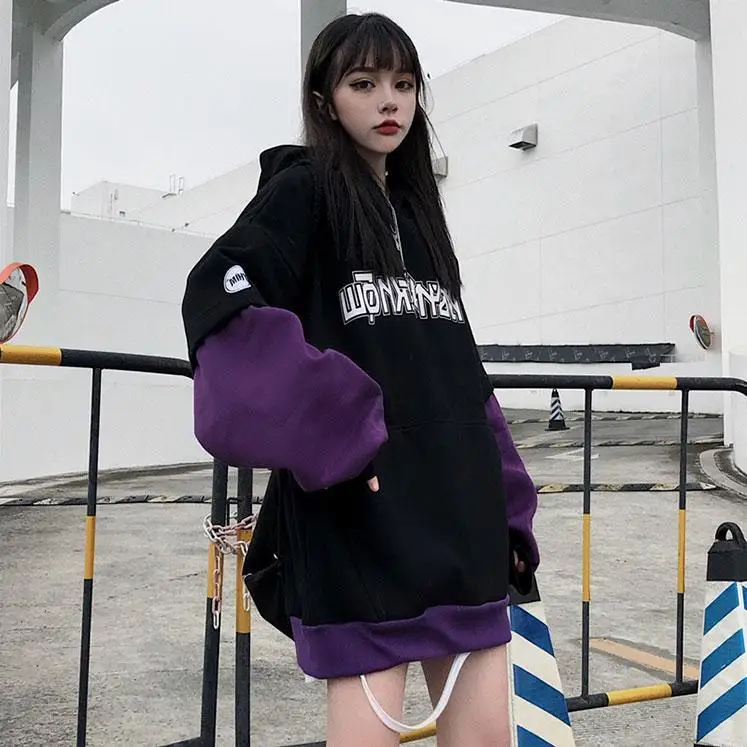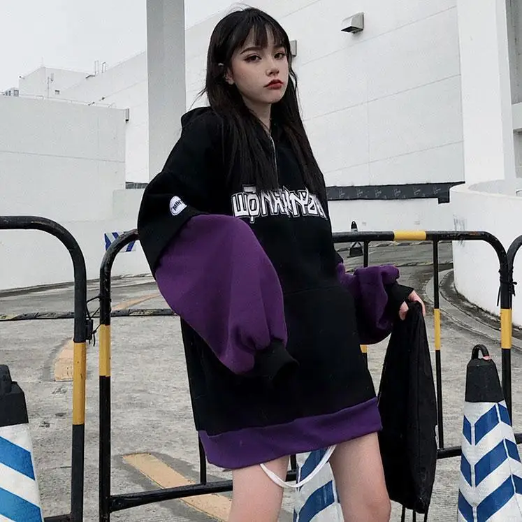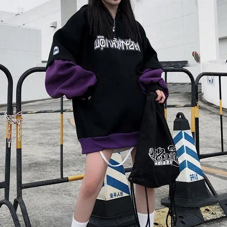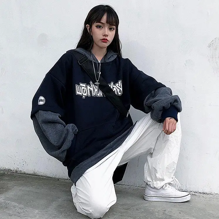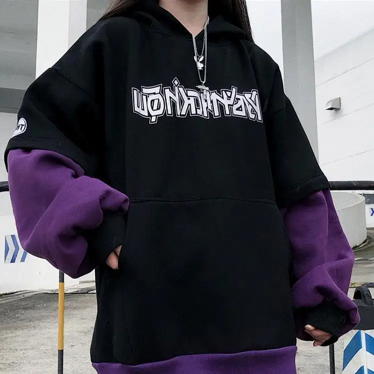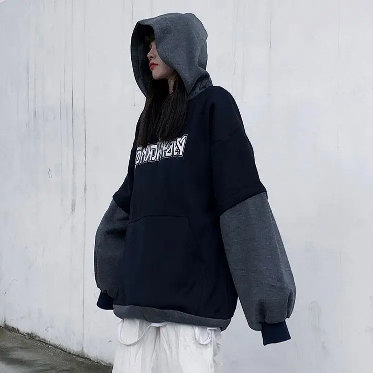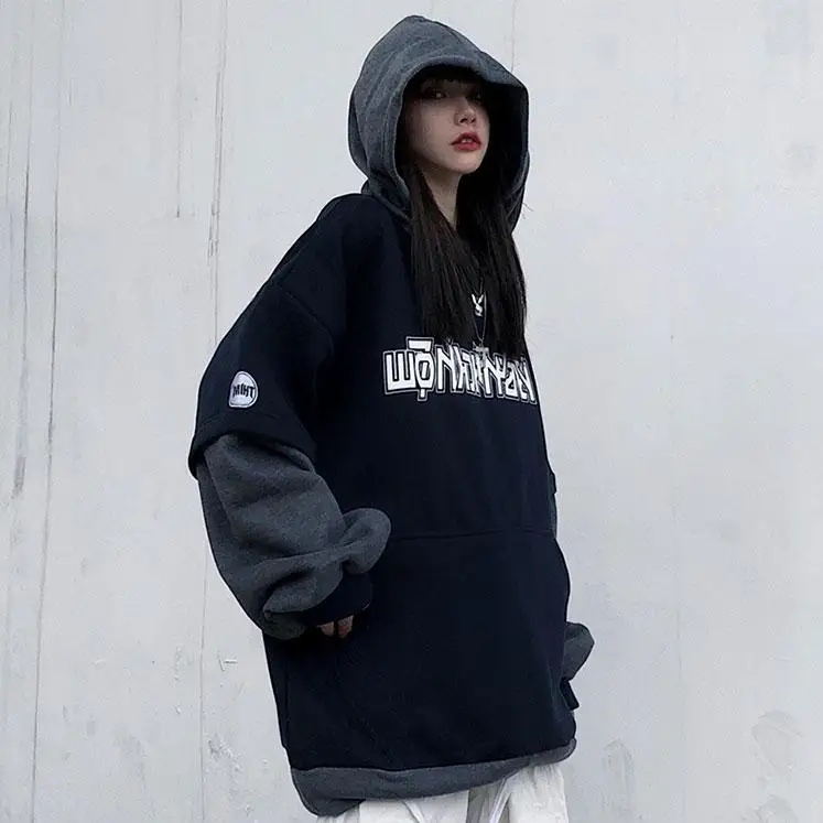 Znbbw fleece thickened letter hoodie men's gothic hip-hop street Korean loose fashion casual sweater 90s retro men's clothing