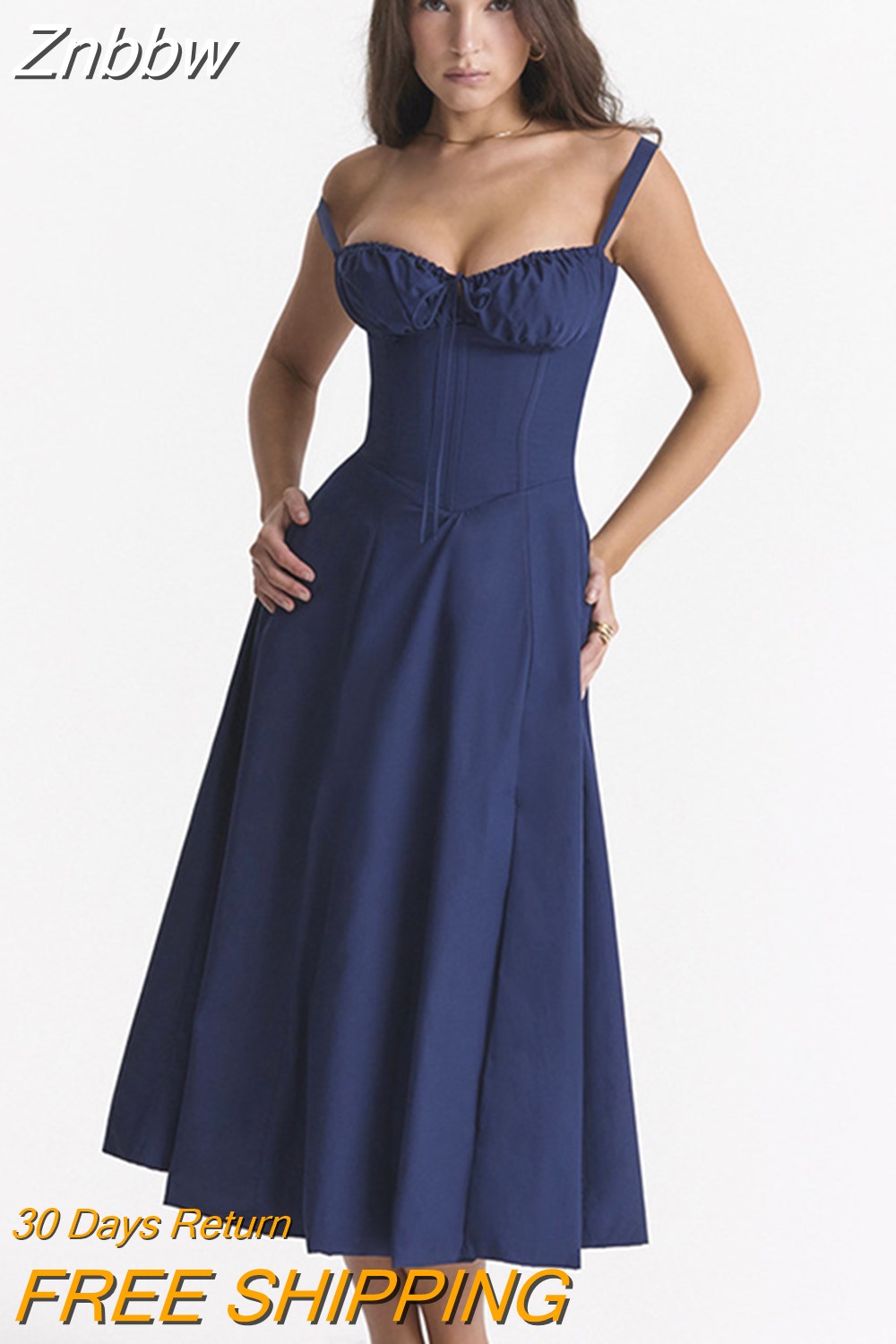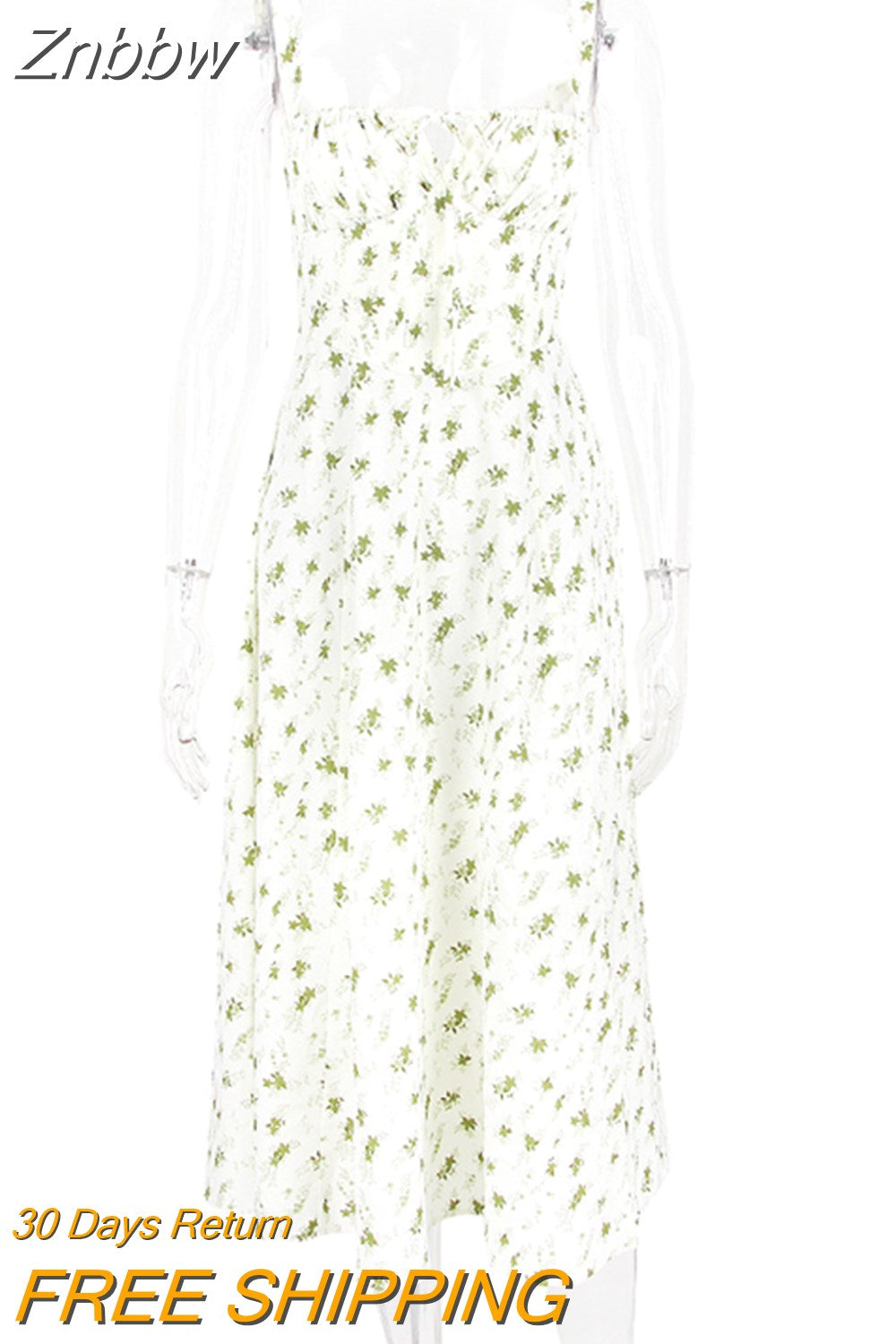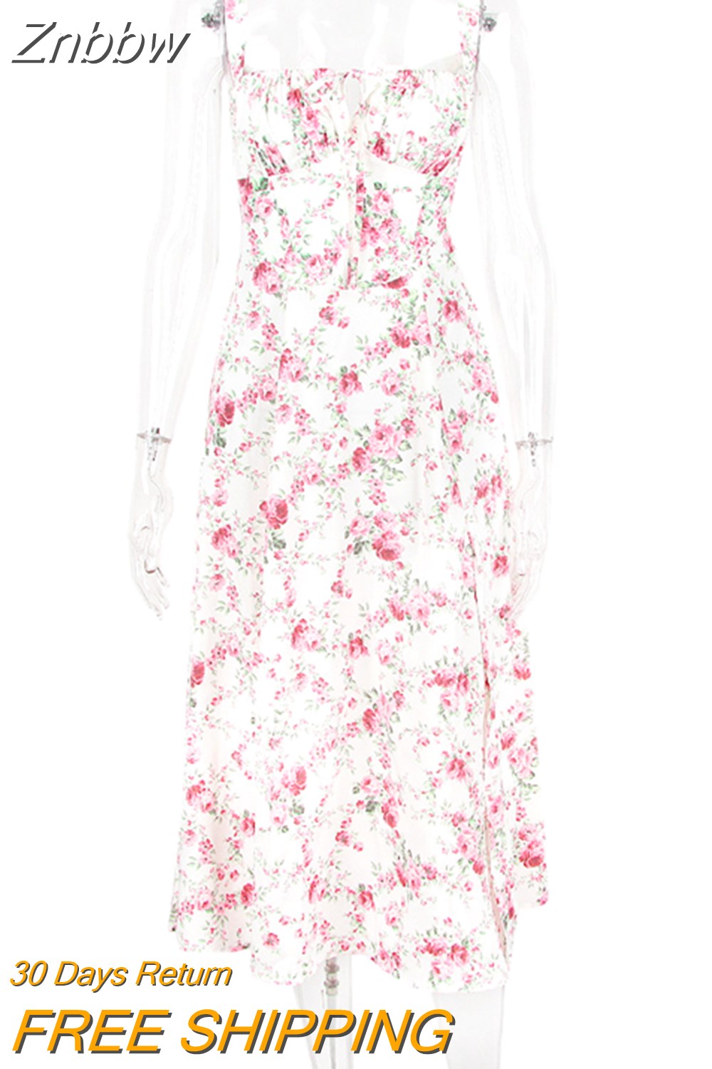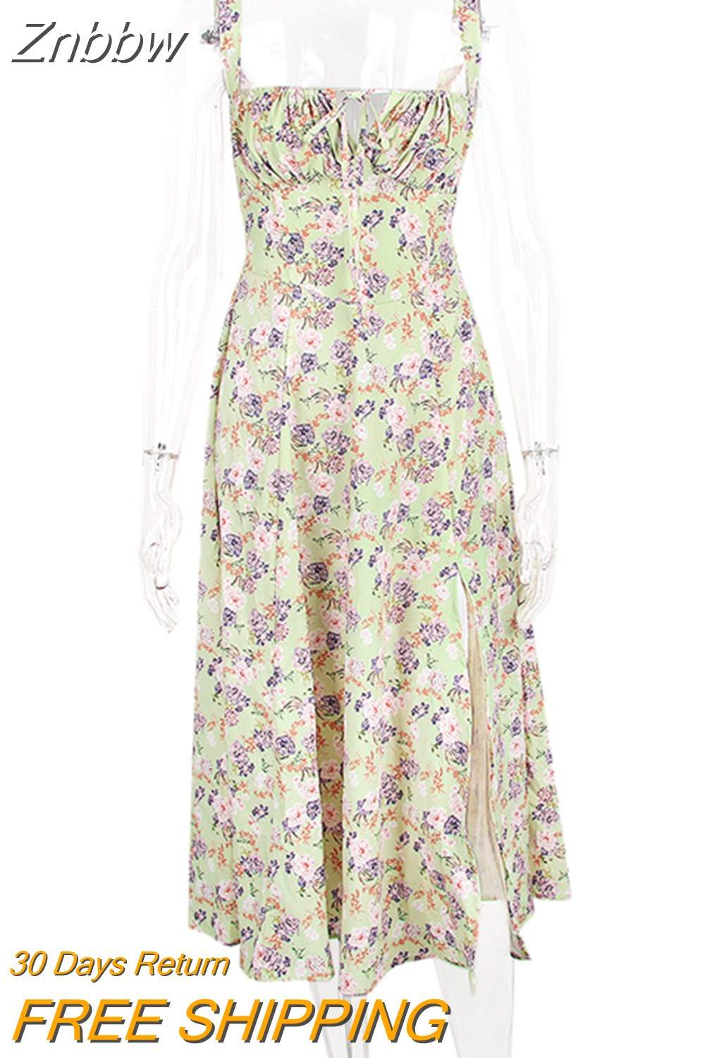 Znbbw Floral Print Sexy Midi Dress For Women New Sleeveless Backless High Split Sundress Ladies Elegant Lace-up Long Dress