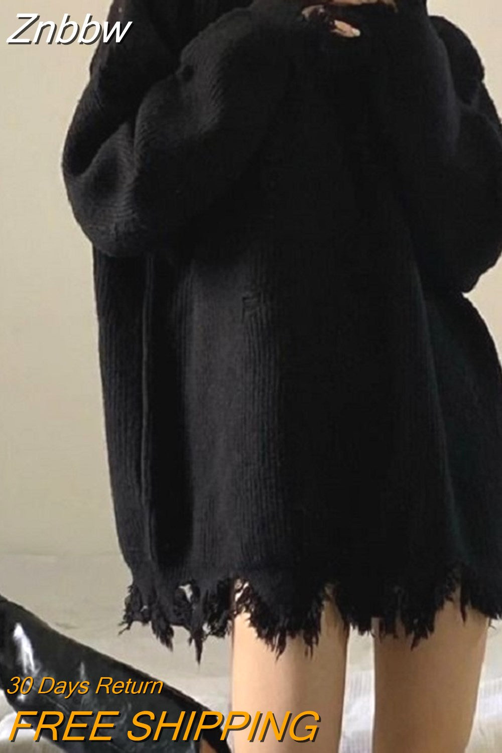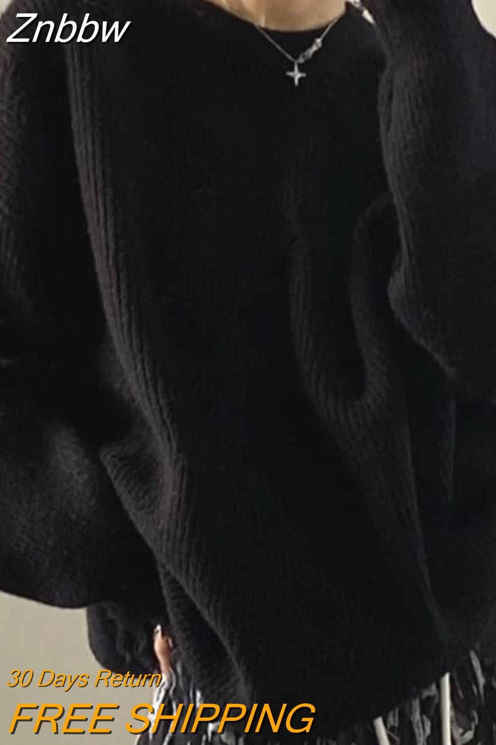 Znbbw Gothic Style Punk Black Knitted Sweater Women Oversize O-neck Goth Grunge Knit Pullover Korean Fashion Long Sleeve Tops