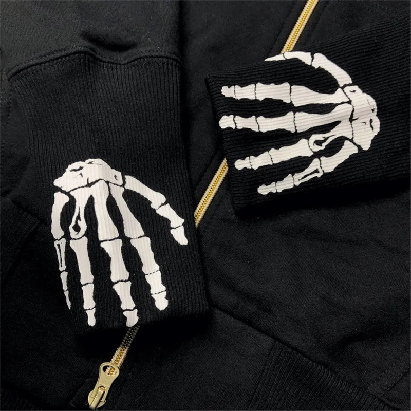 Model Number: Rhinestone Skeleton Zip Up Oversized Hoodie Retro Clothes Pullover