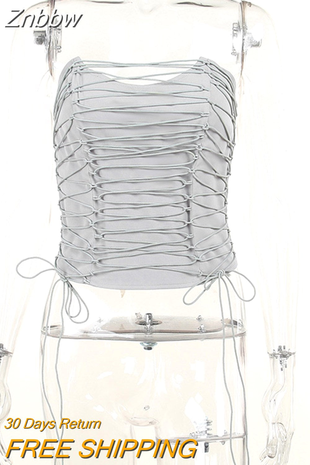 Znbbw Gray Hollow Out Sexy Tank Top Women Vest Zipper Off-shoulder Sleeveless Crop Tops Female Fashion Bodycon Corset Top