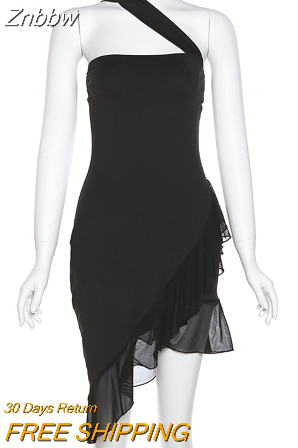 Znbbw Halter Backless Ruffles Bodycon Mini Dress Women Off Shoulder Pink Prom Vestidos 2023 Summer Harajuku Lolita Y2K Clothes