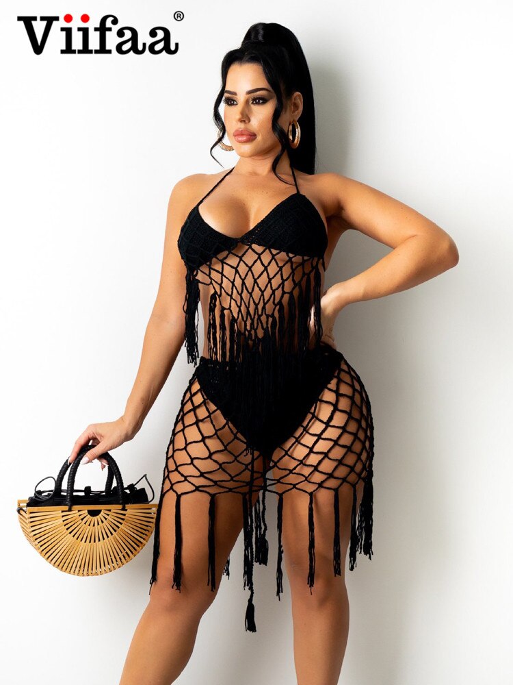 Znbbw Halter Top and Mini Skirt Women Crochet Two Piece Set Beach Summer Vacation Sexy 2 Piece Sets Festival Outfit 2023