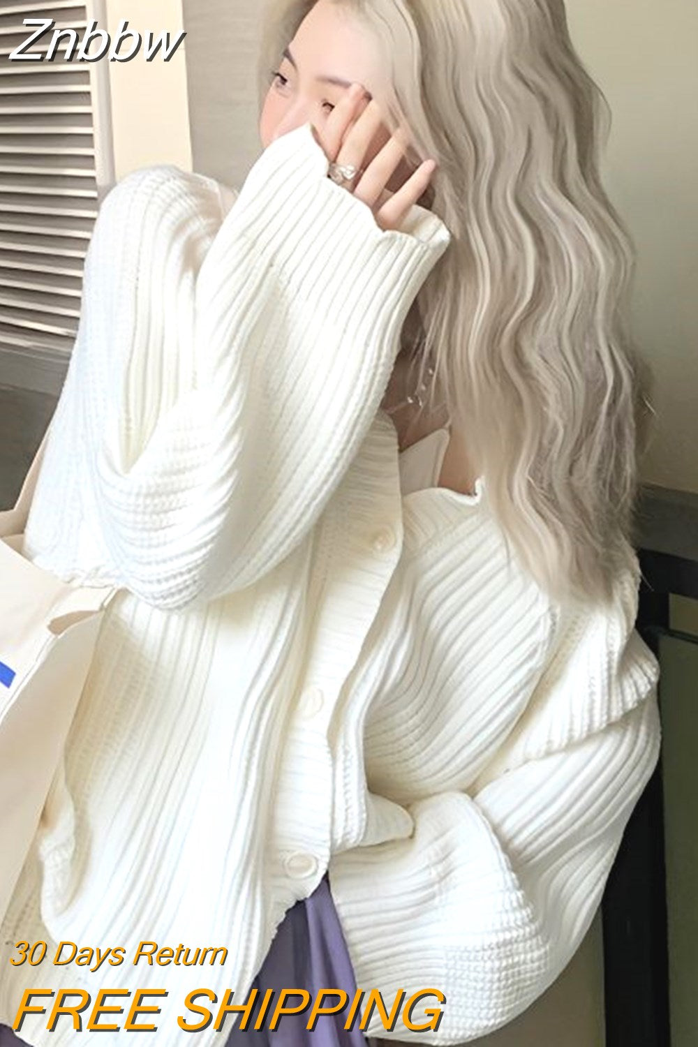 Znbbw Harajuku White Knitted Cardigan Women Vintage Oversized Hollow Out Sweater Lazy Style Casual Knitwear Tops High Street