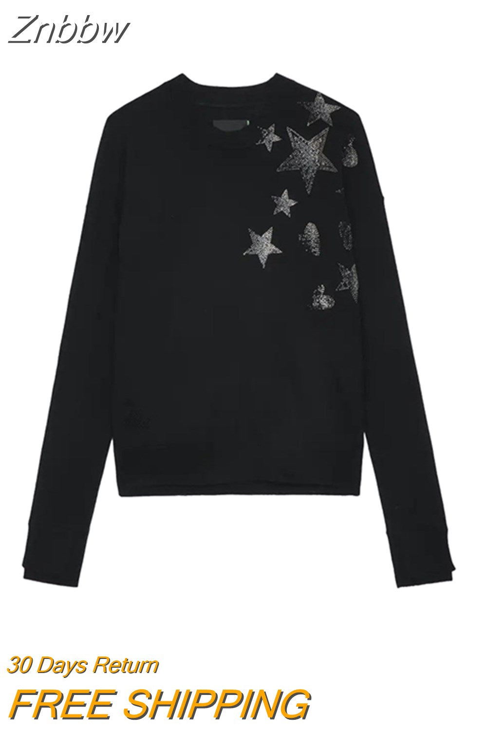 Znbbw Heart Strass Sweater Women 2023 Spring Autumn Long Sleeve Sweater Casual Vintage Tops Female Fashion Loose Pullovers Pull