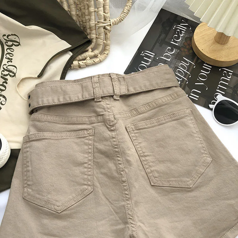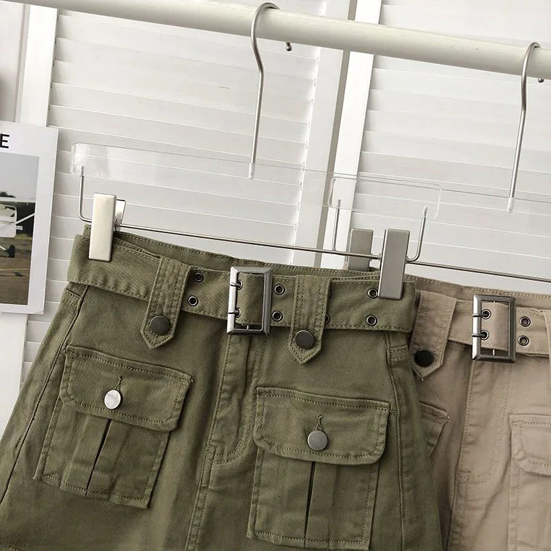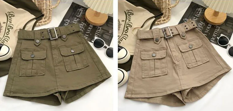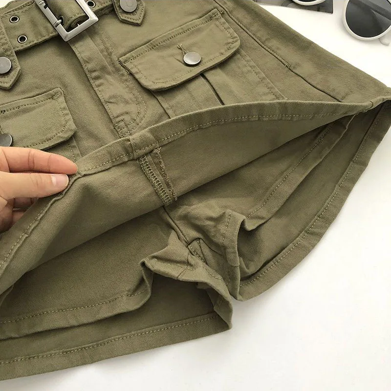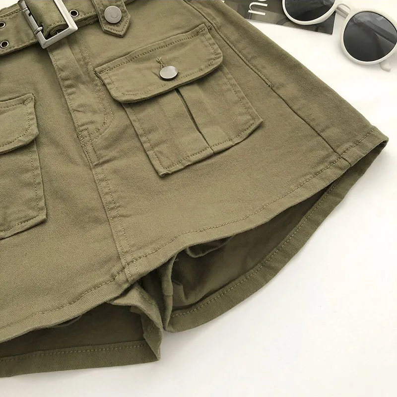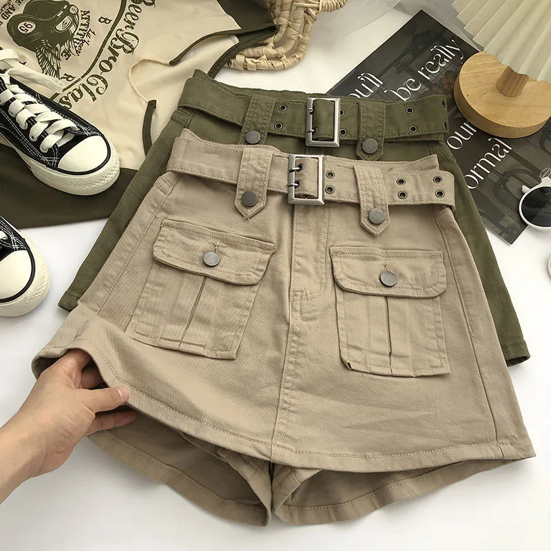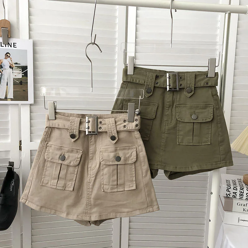 Znbbw High Waist Cargo Skirts Women Fashion Korean Chic with Belt Short Culotte Skirts Female Pocket Streetwear Jean Mini Skirts