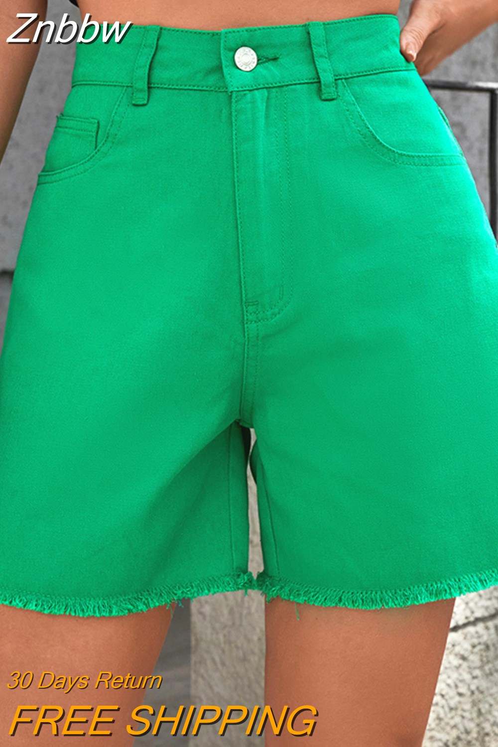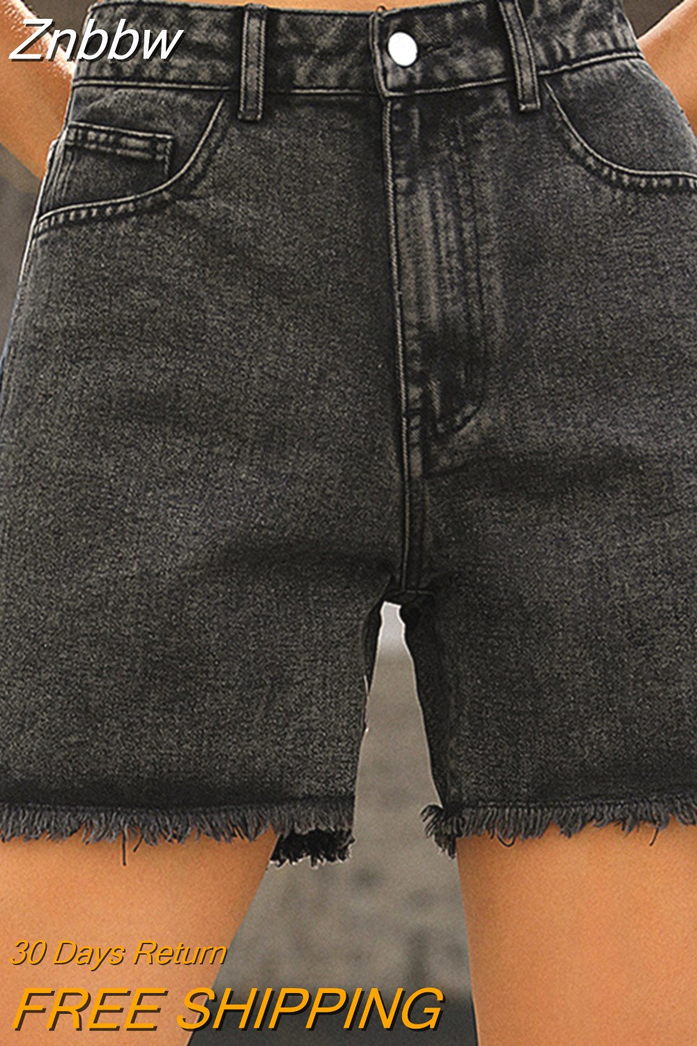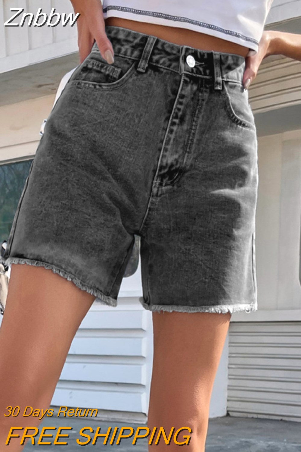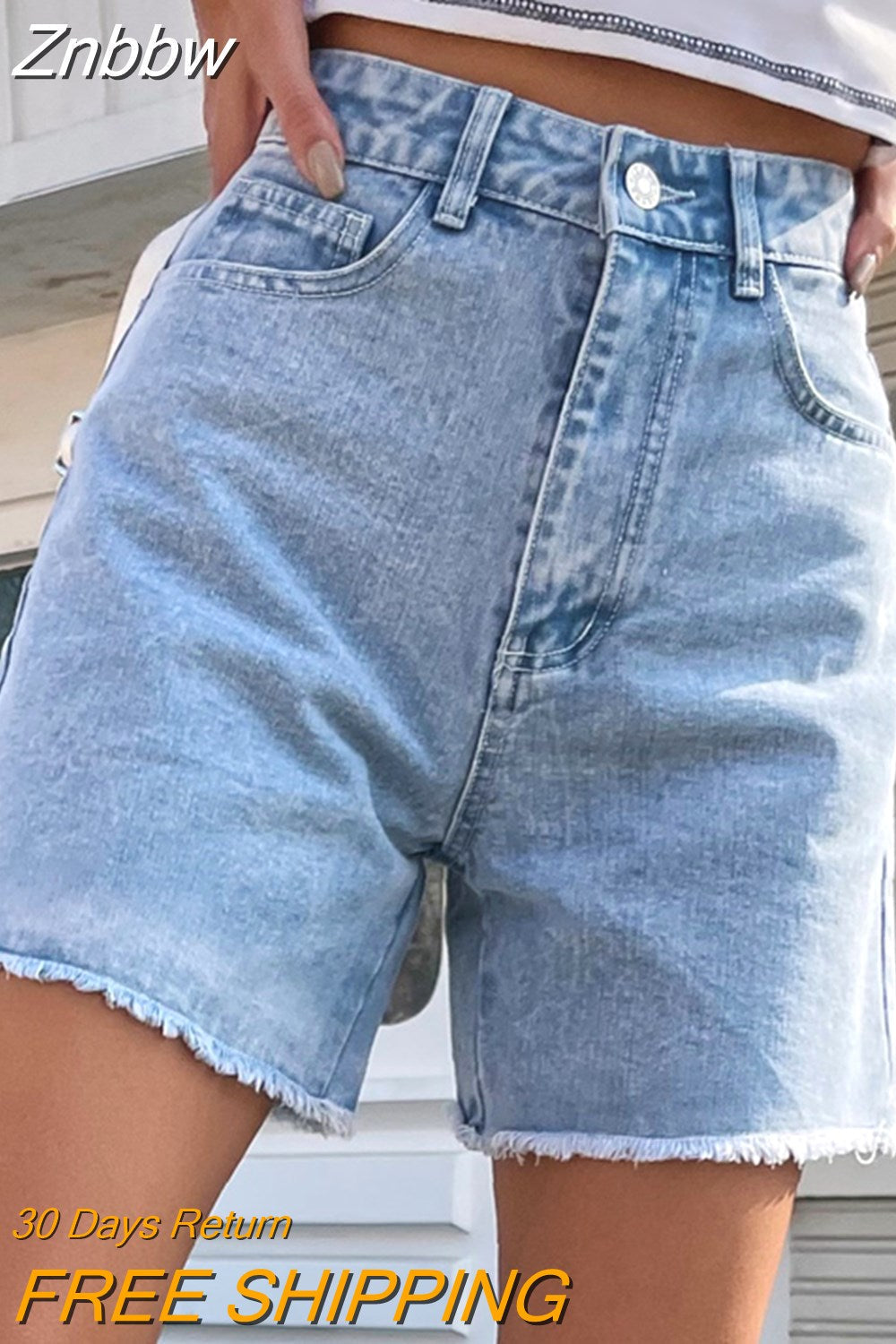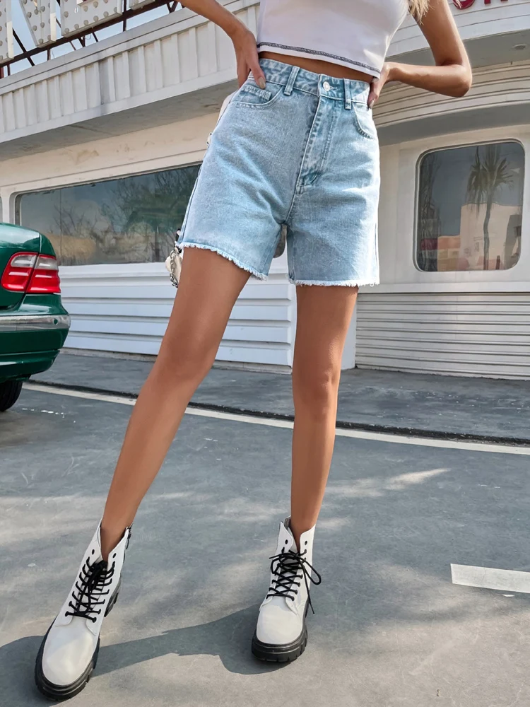 Znbbw High Waist Frayed Hem Solid Denim Shorts Women Summer Streetwear 2023 Zipper Fly Pockets Fashion White Jean Shorts