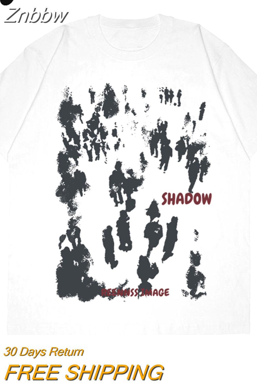 Znbbw Hip Hop Men's Short Sleeve T Shirt Vintage Character Shadow Print T Shirt 2023 Streetwear Harajuku Casual Cotton T Top