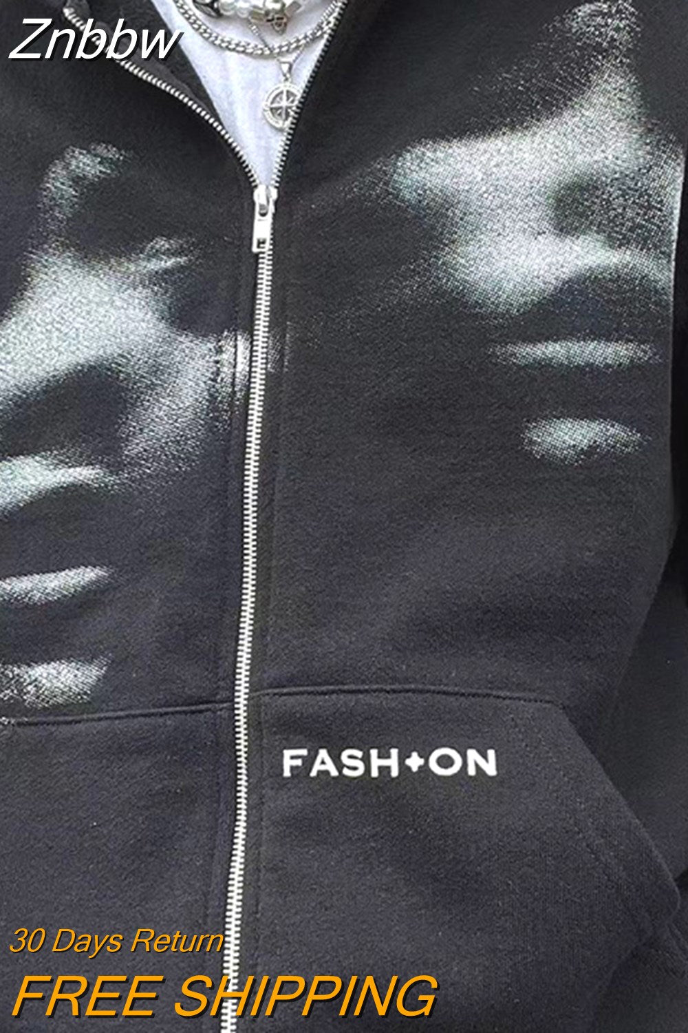 Znbbw Hoodie Men Women Y2K clothing Hoodie Fashion Hoodies Goth Black face Print Long Sleeve Sweatshirt Oversized Tops