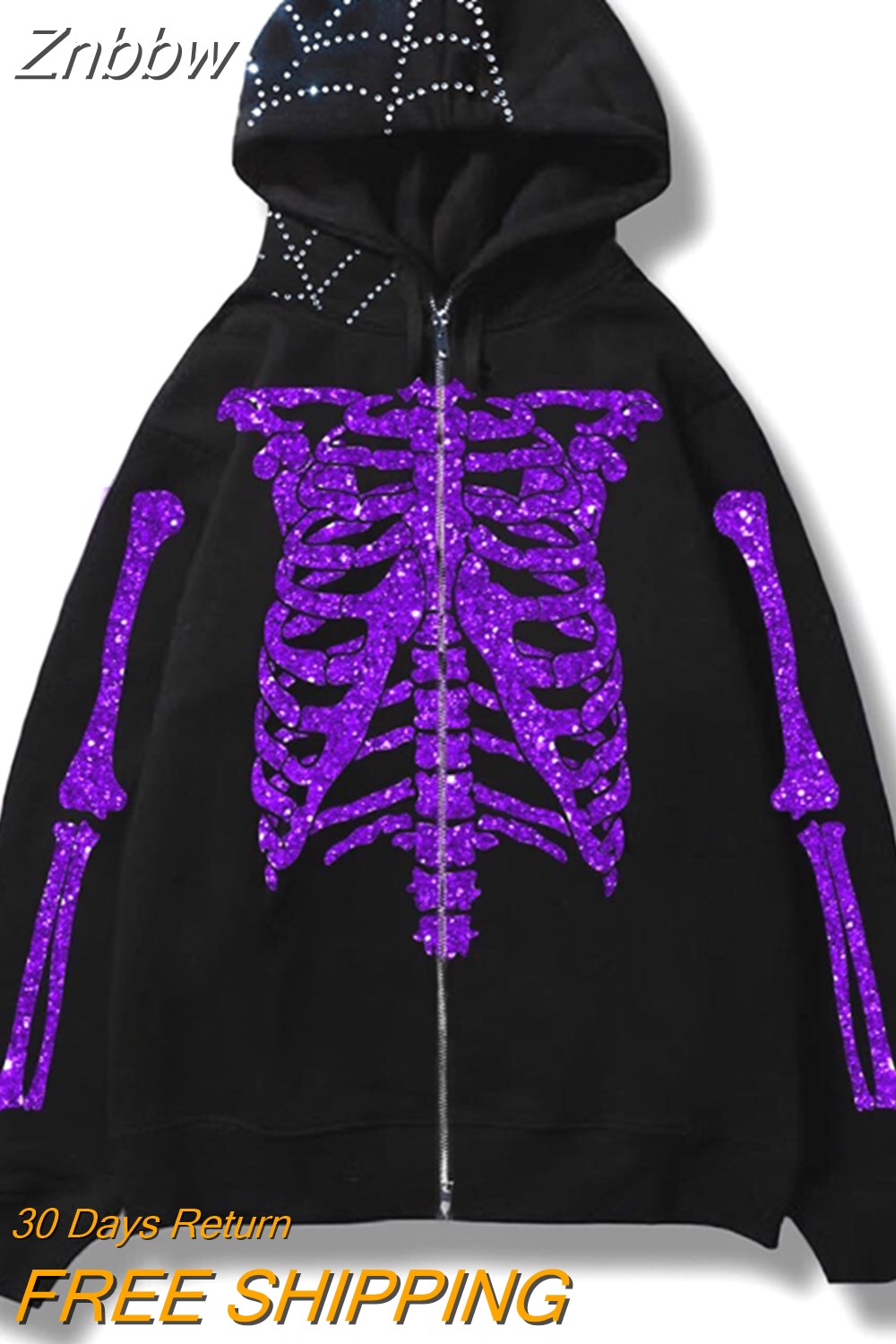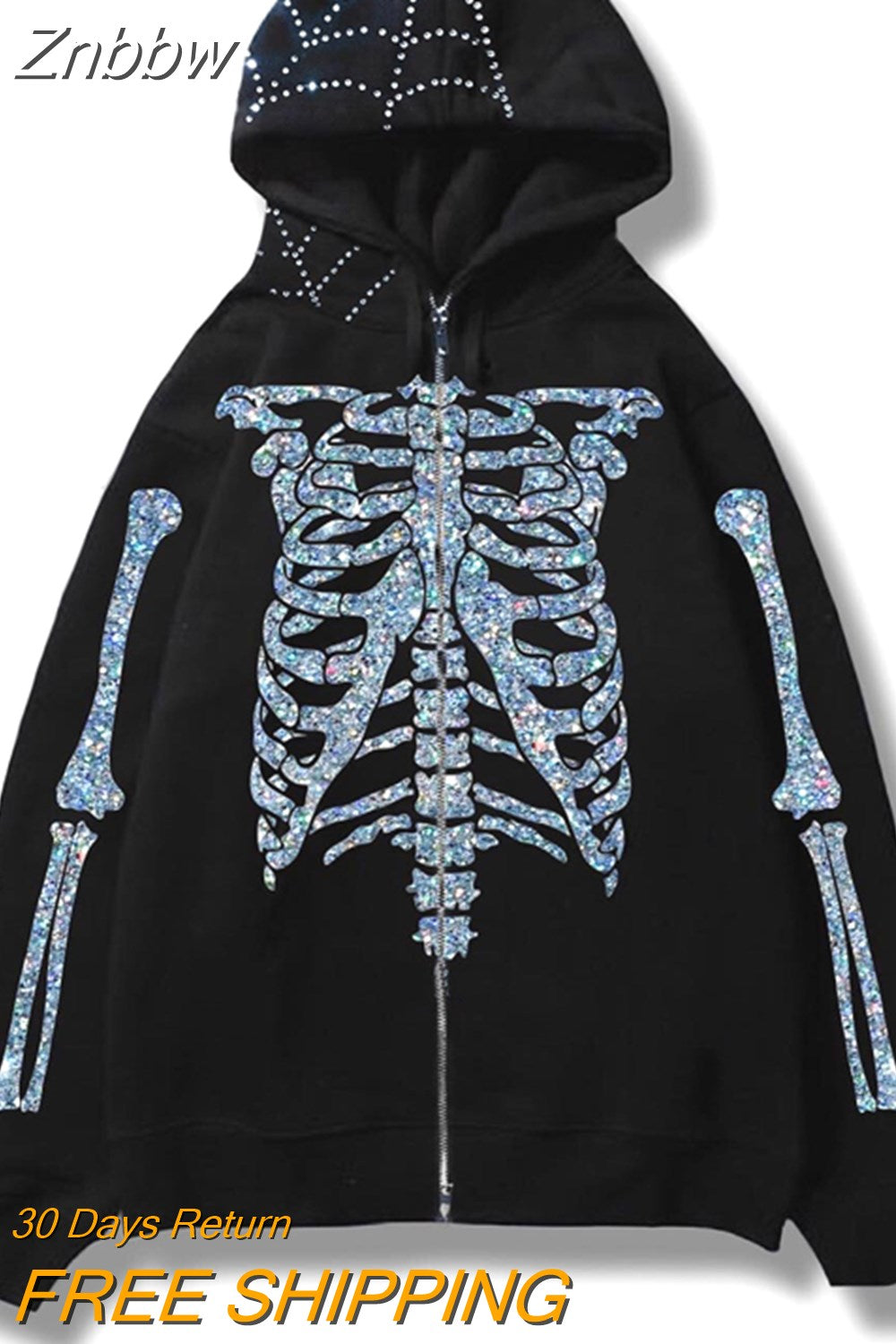 Znbbw Hot diamond skull Embellished Hoodies Men Women fashion all-match Jacket Retro Streetwear Gothic teen Apparel Y2k Sweatshirt