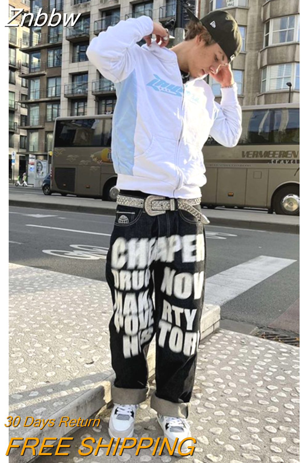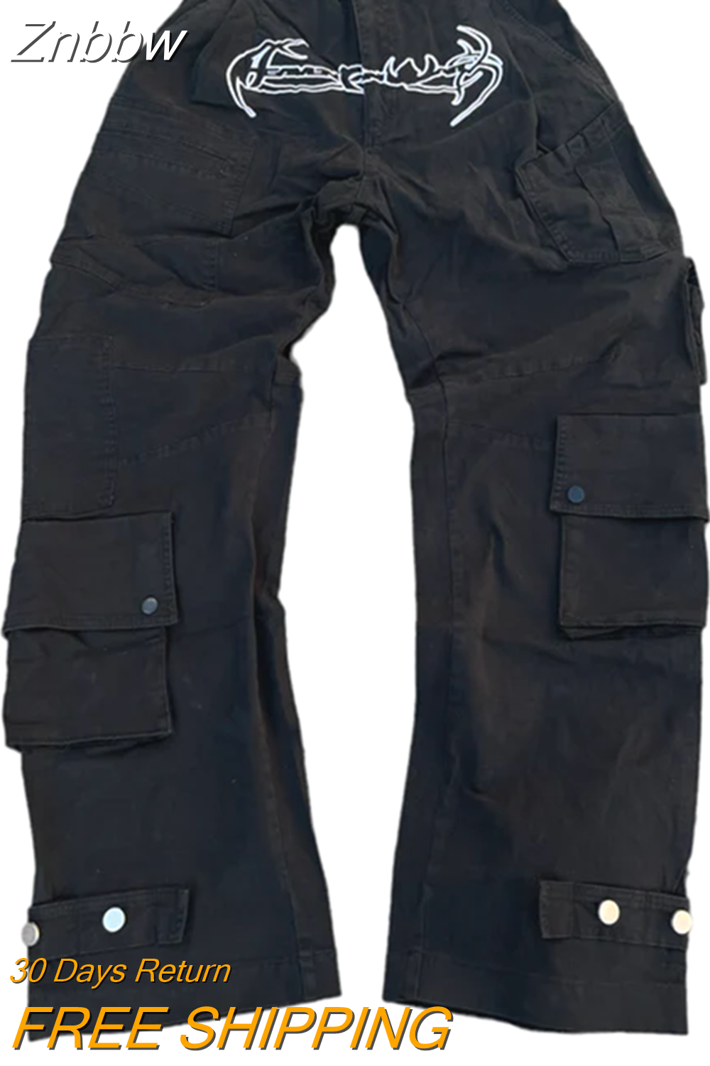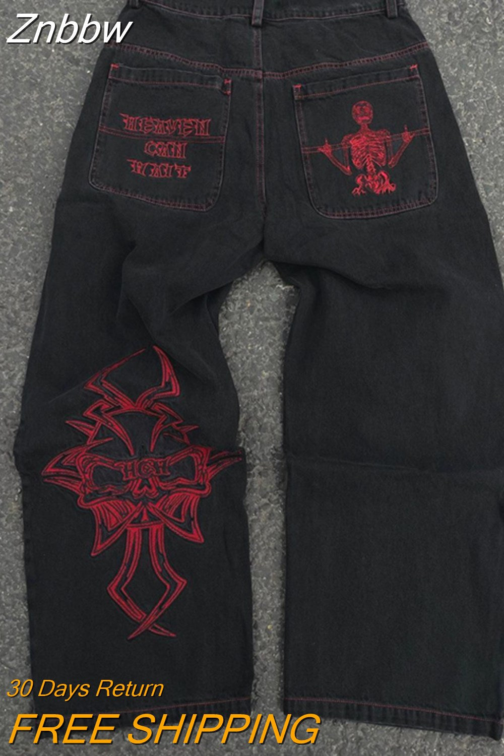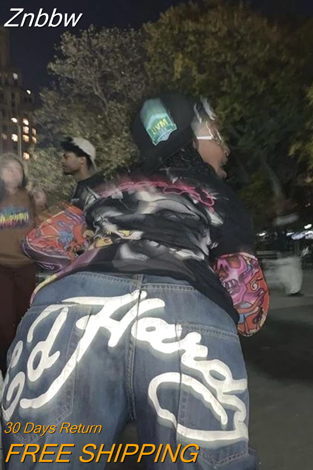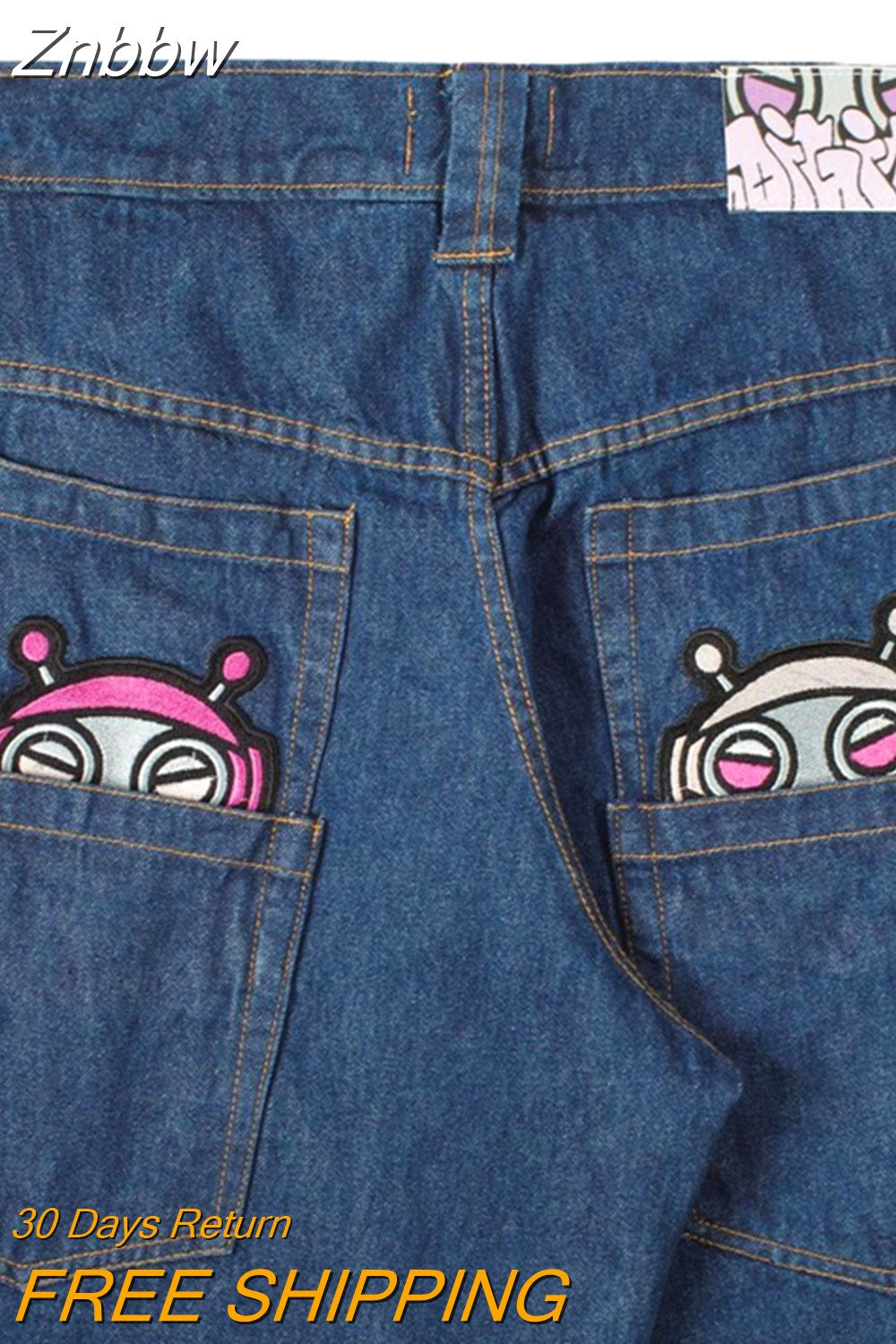 Znbbw Jeans Women Oversized Hip Hop Harajuku Vintage Blue Cargo Streetwear Wide Leg Trousers Y2K Grunge Blue Baggy Denim Pants
