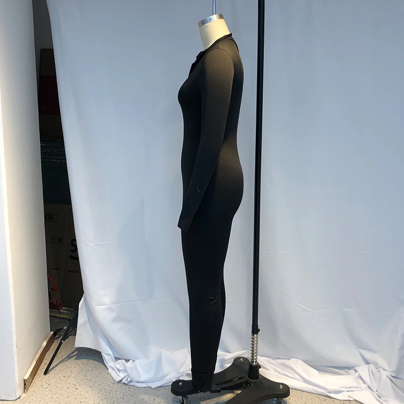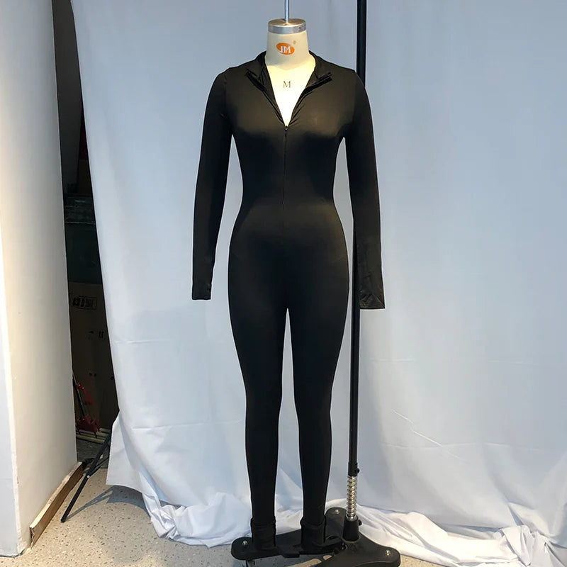 Znbbw Jumpsuit Women Clothes Autumn Casual Slim V Neck Zipper Long Sleeve Solid Outfit Long Pants Skinny Rompers Streetwear