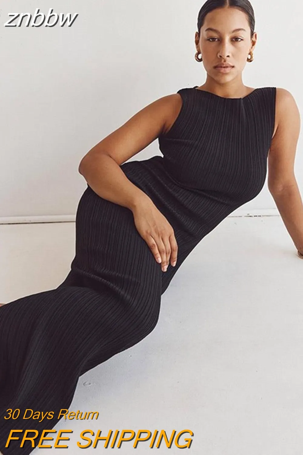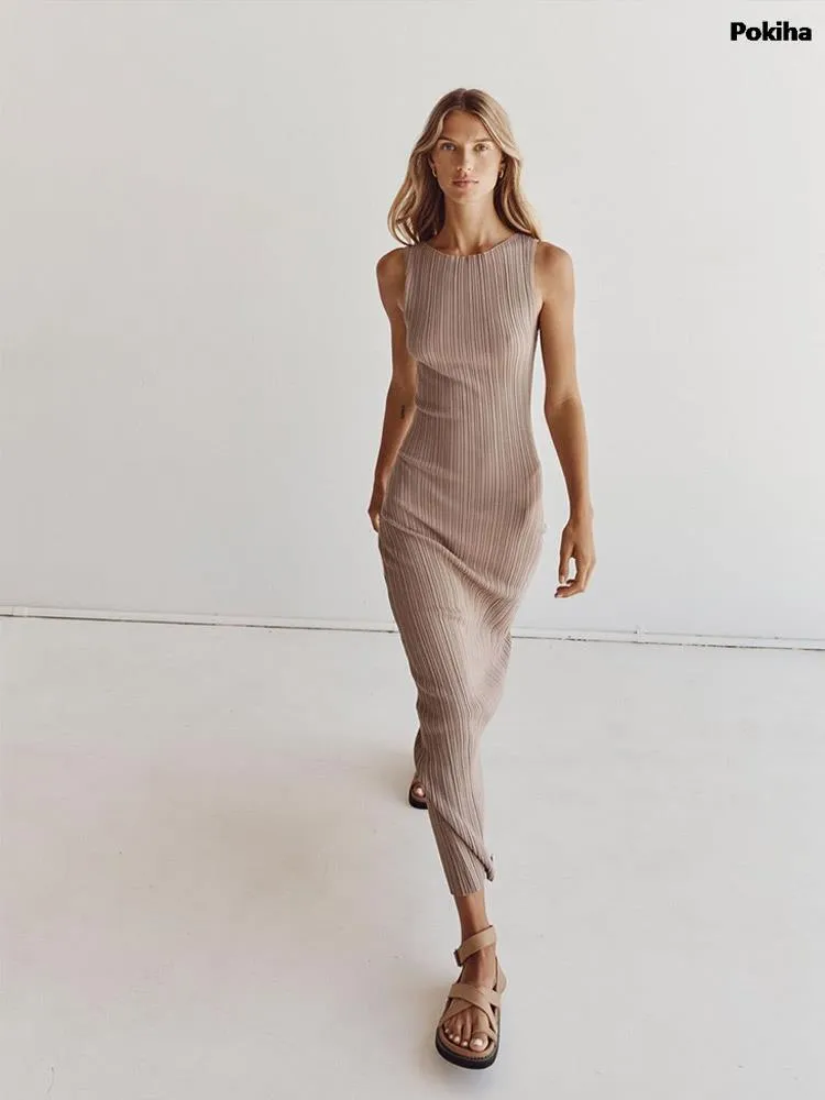 Model Number: Cotton Sleeveless Knitted Pit Stripe Vest Dress