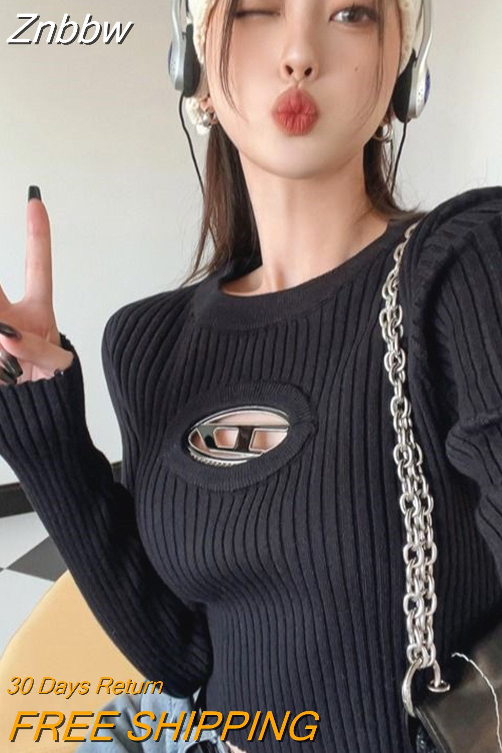 Znbbw Korean Fashion Cropped Sweater Women Vintage Hip Hop Sexy Slim Hollow Out Pullover Casual Chic Knitwear Y2K Tops Grunge