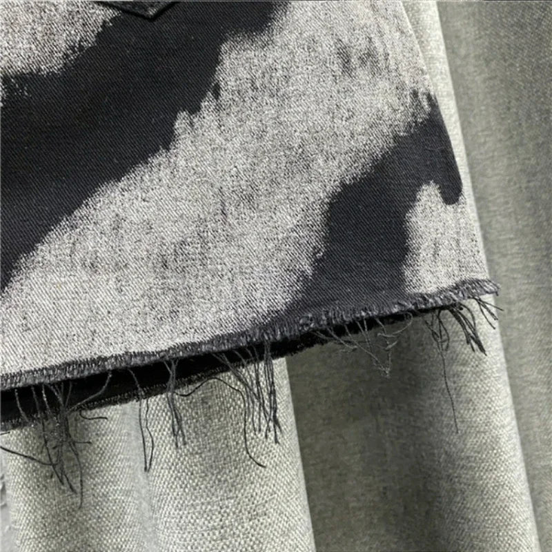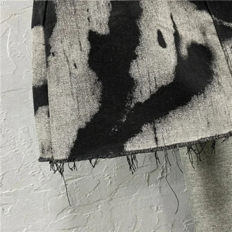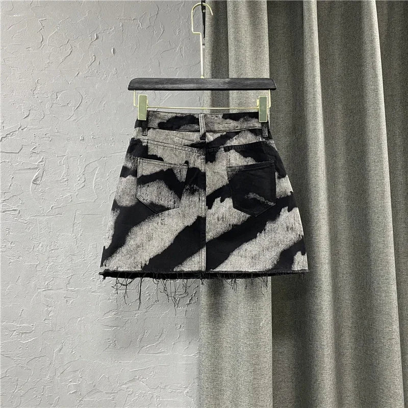 Znbbw Korean Fashion Skirts 2024 New Spring Summer High Waist Mini Denim Skirt Harajuku Vintage Tie Dye Raw Edge Women's Clothing