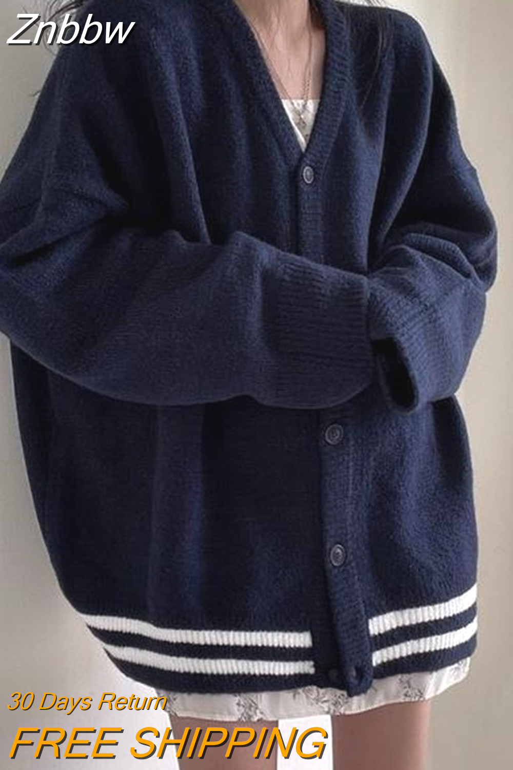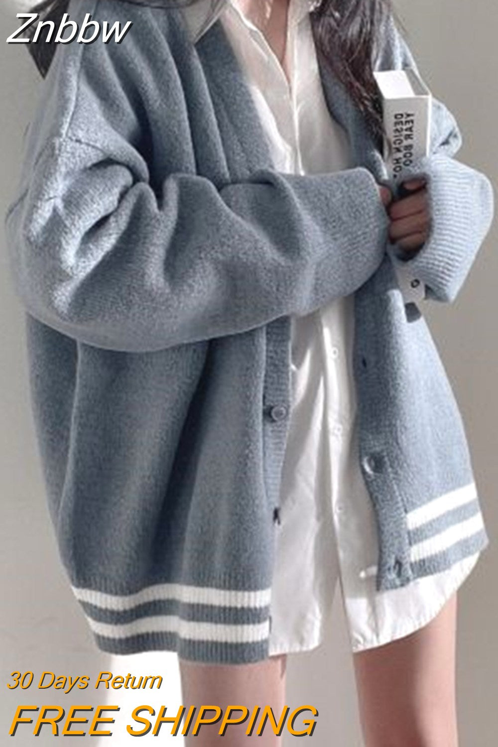 Znbbw Korean Style Basic Solid Cardigan Sweater Women Preppy Fashion Oversize Long Sleeve Jumper Female Autumn V-neck Jackets