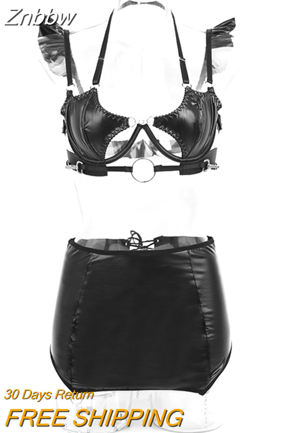 Znbbw Latex Fetish Lingerie Sissy Bandage Hollow Skirt Fancy Underwear Uncensored Halter Push-Up Bras PVC 3-Piece Intimates