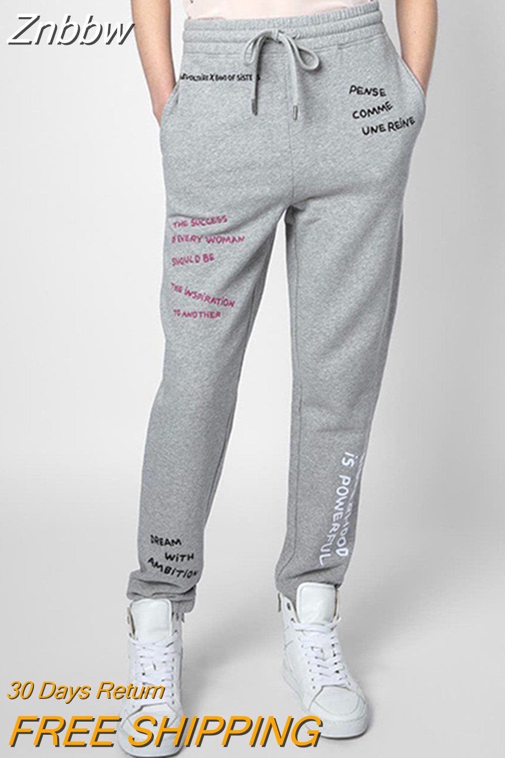 Znbbw Letter Cotton Pants Women 2023 Spring Autumn Drawstring Sprot Pants Trousers Casual Classic Streetwear Sweatpants Female