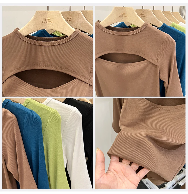 Znbbw Long Sleeve Tshirt Women Black Tops T Shirts Girl Spring Chic Hollow Out Tee Shirt