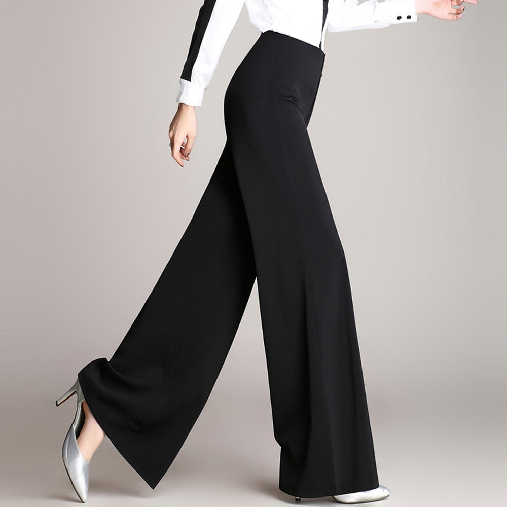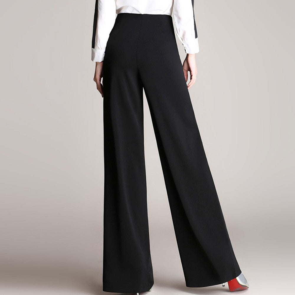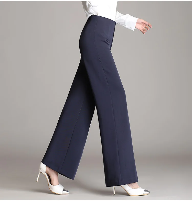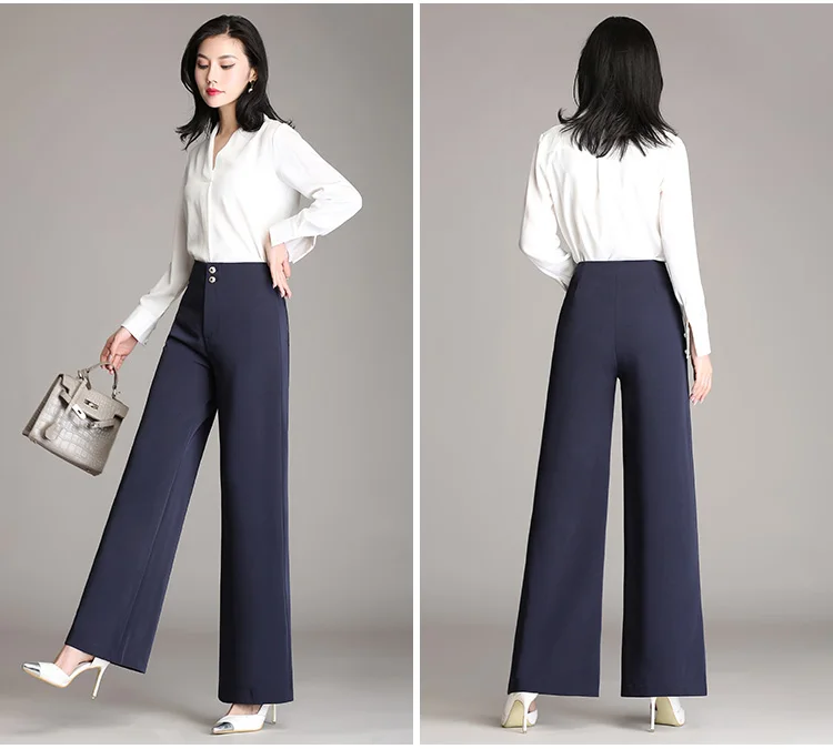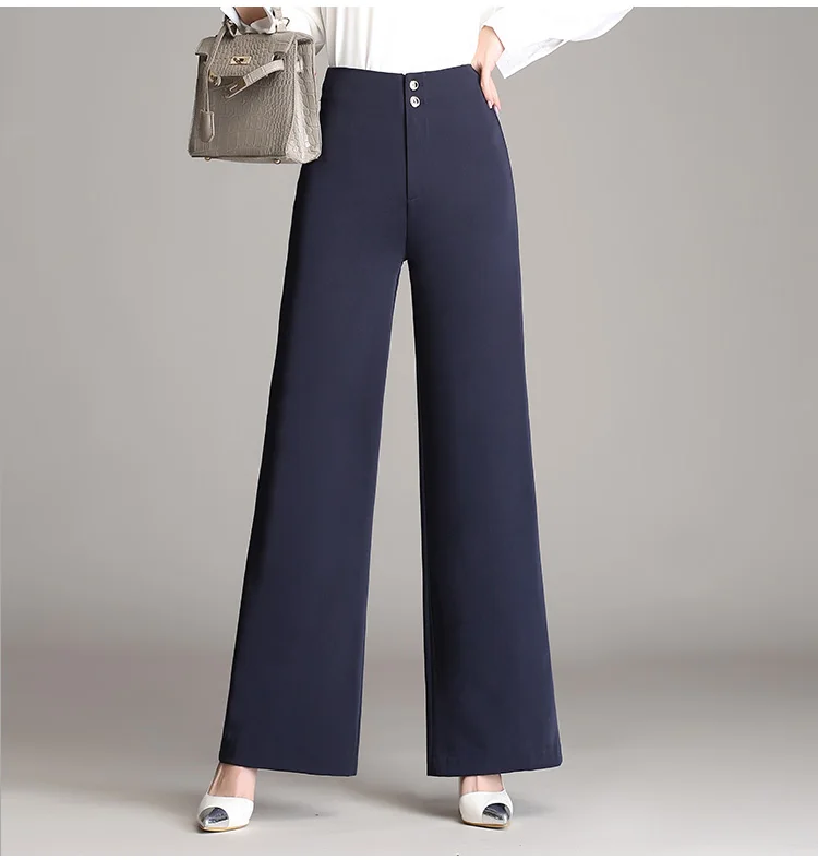 Znbbw Loose Women Wide Leg Pants Long Trousers Elegant High Waist Casual Pants Black Navy Elegant Straight Flat Office Pants
