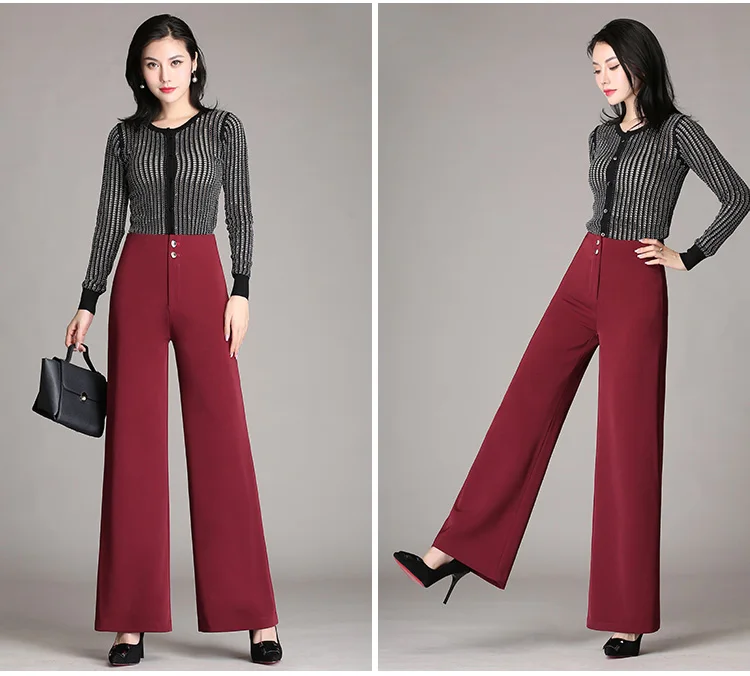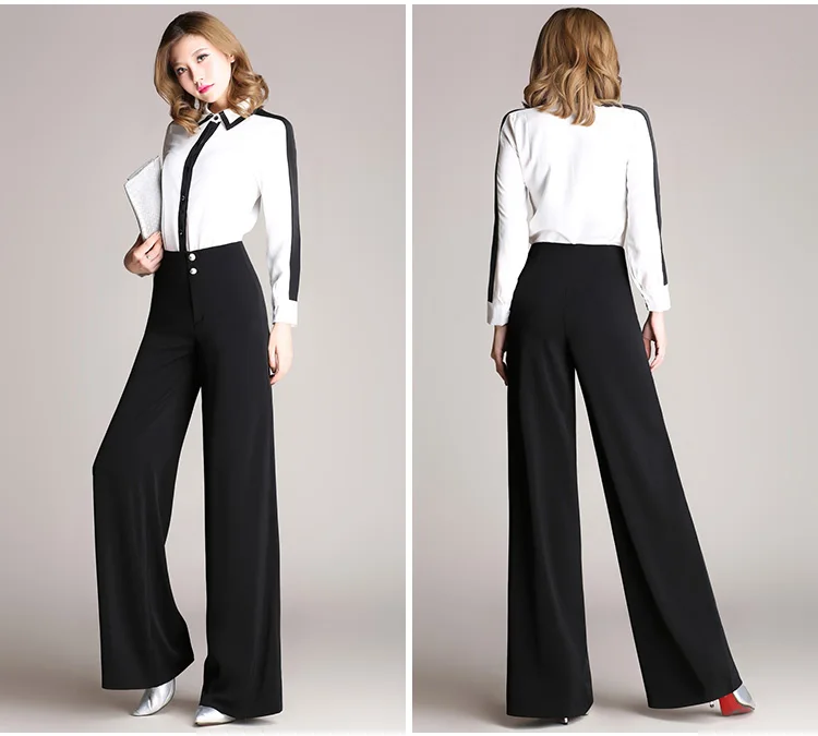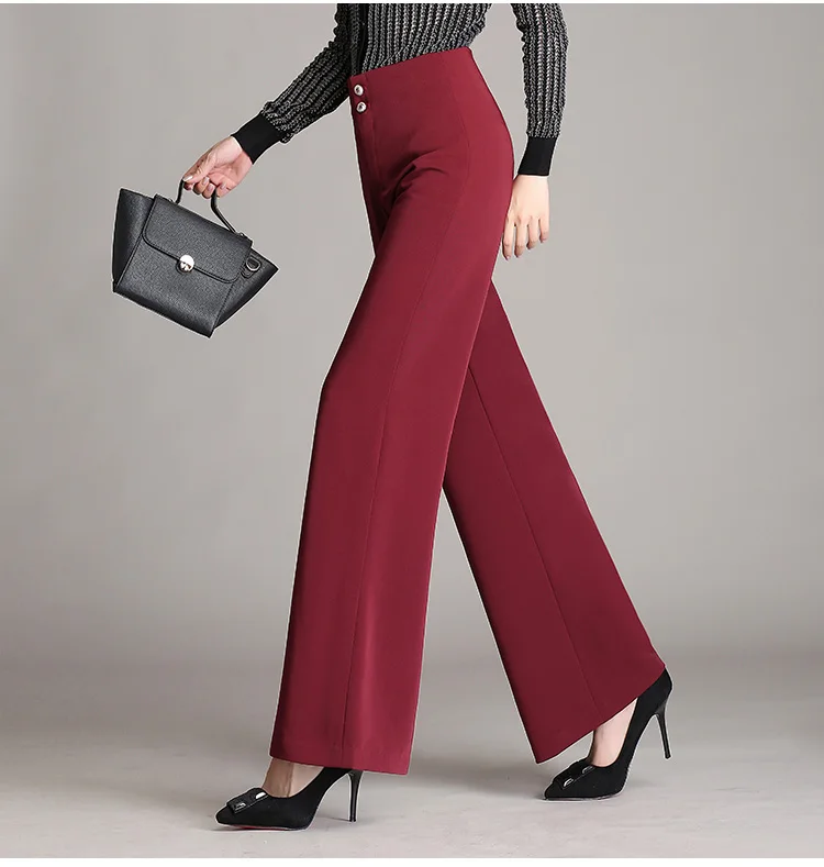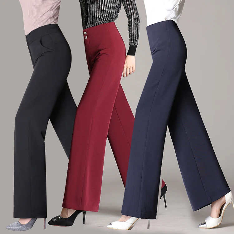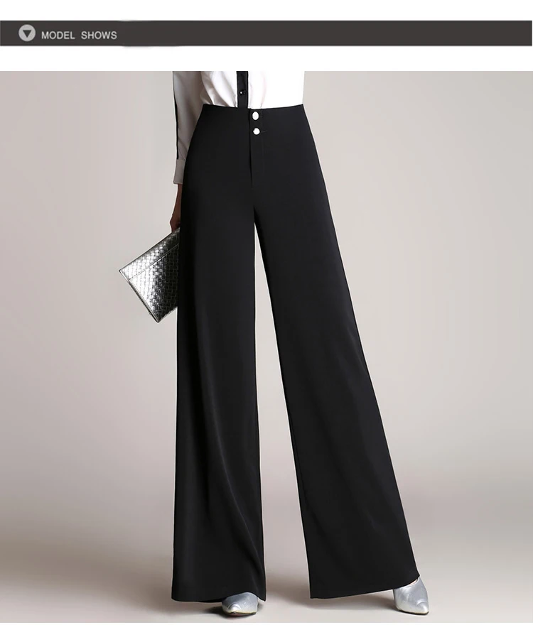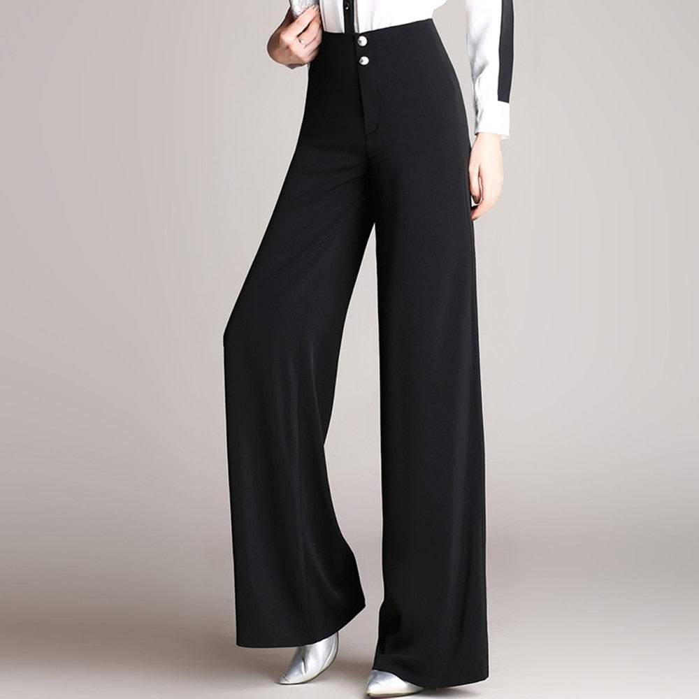 Znbbw Loose Women Wide Leg Pants Long Trousers Elegant High Waist Casual Pants Black Navy Elegant Straight Flat Office Pants