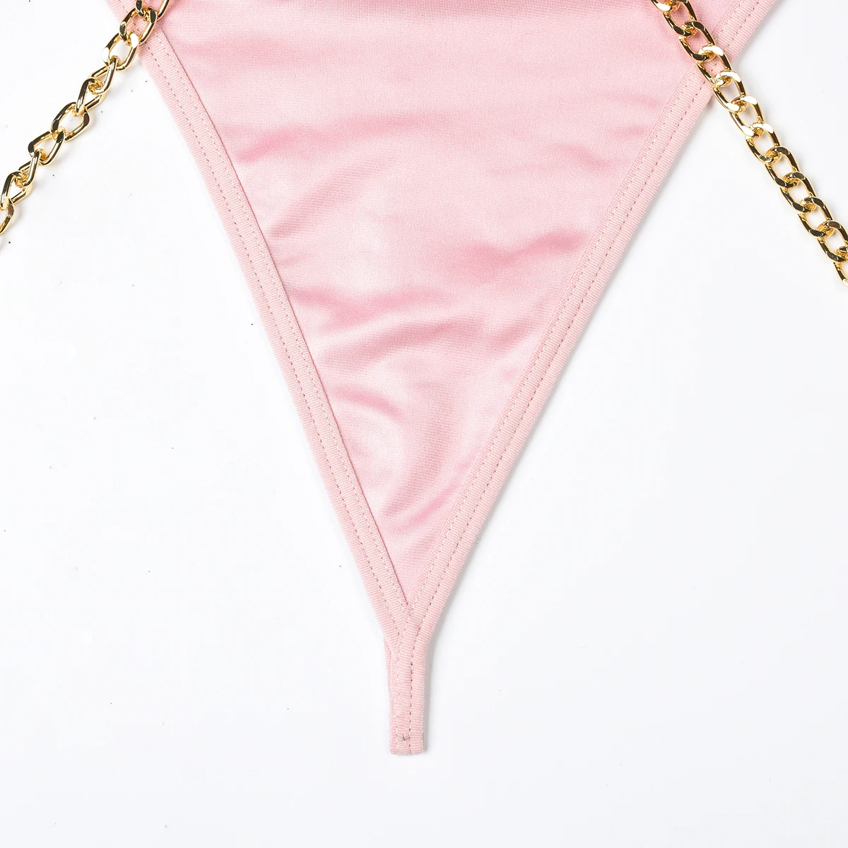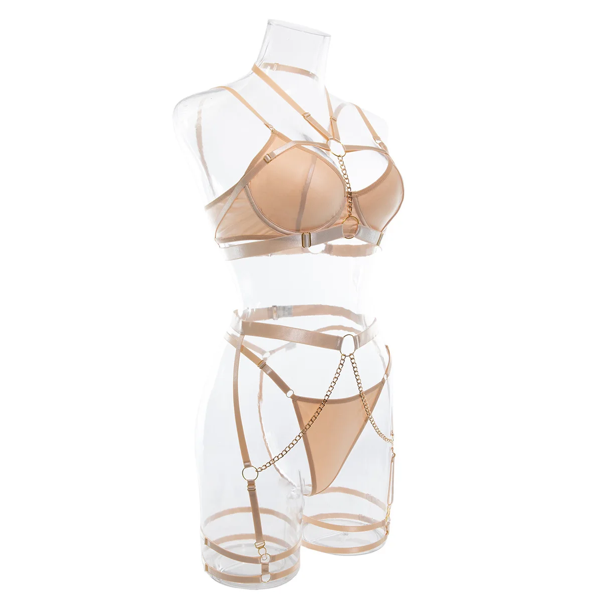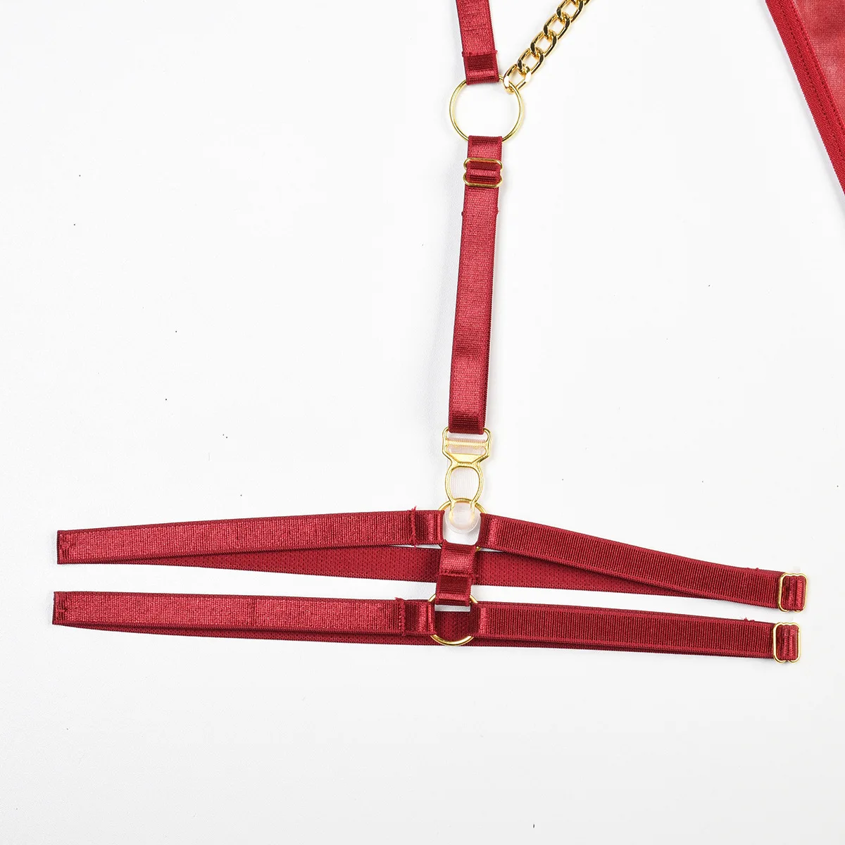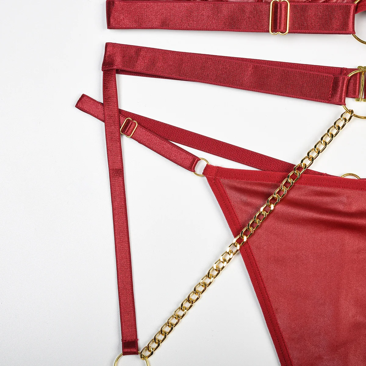 Znbbw Matte Leather Female Lingerie Sexy Luxury Uncensored Underwear 6-Piece Intimate Halter Chain Fine Bra And Panty Set