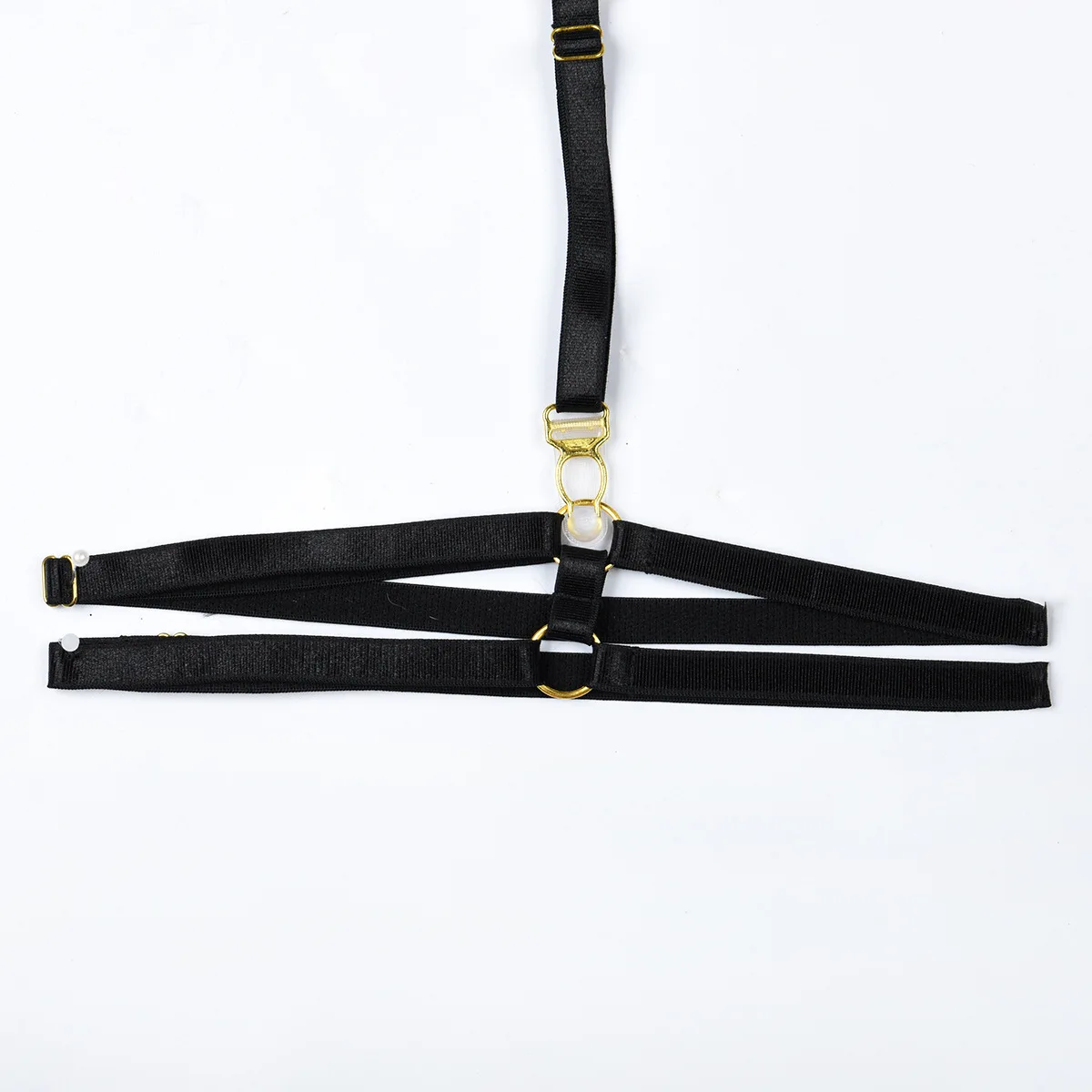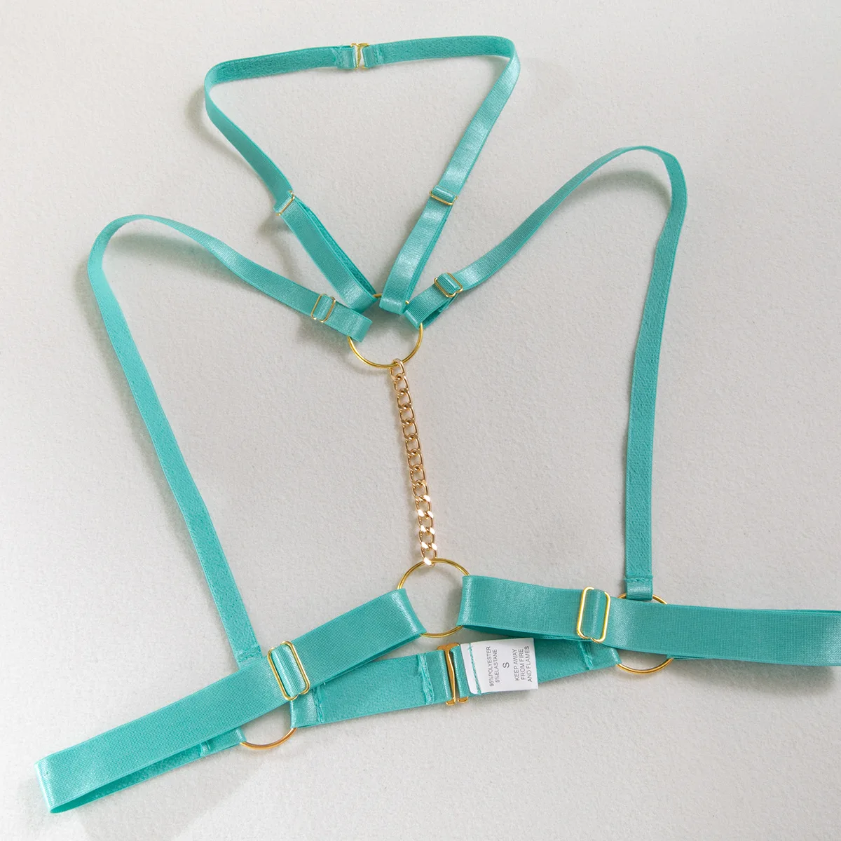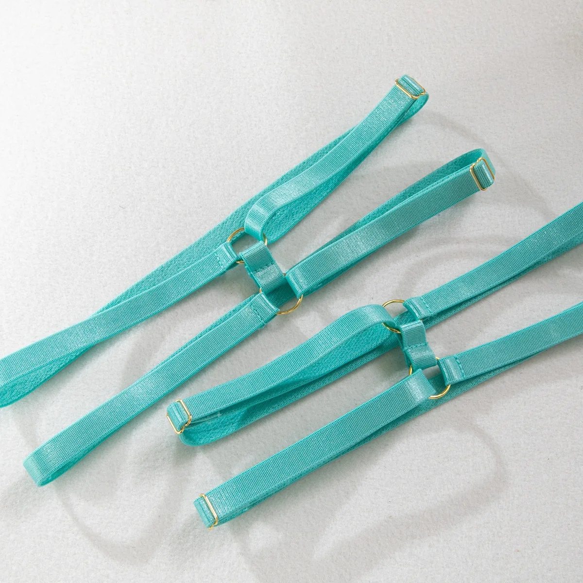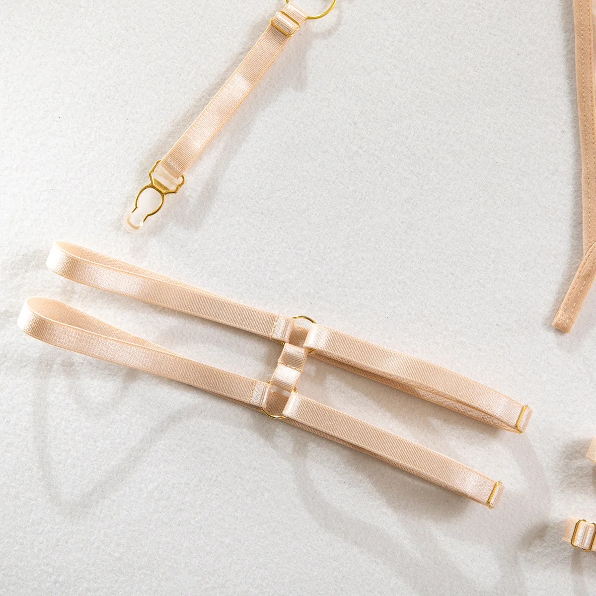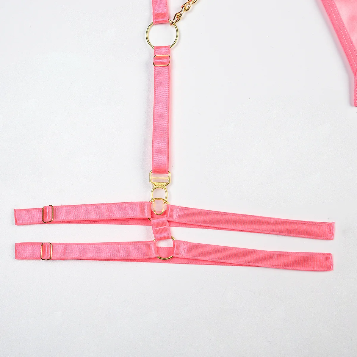 Znbbw Matte Leather Female Lingerie Sexy Luxury Uncensored Underwear 6-Piece Intimate Halter Chain Fine Bra And Panty Set