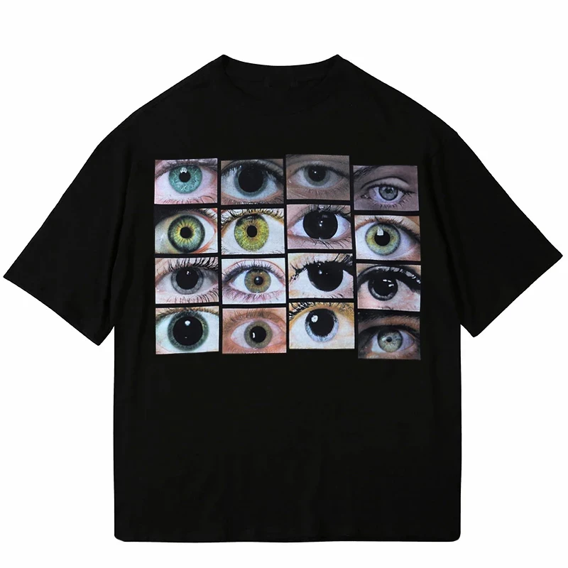 Znbbw Men Hip Hop Streetwear T Shirt Eyes Printed Harajuku Y2K T-shirt Cotton Casual Shirt Summer Short Sleeve Tops Tees