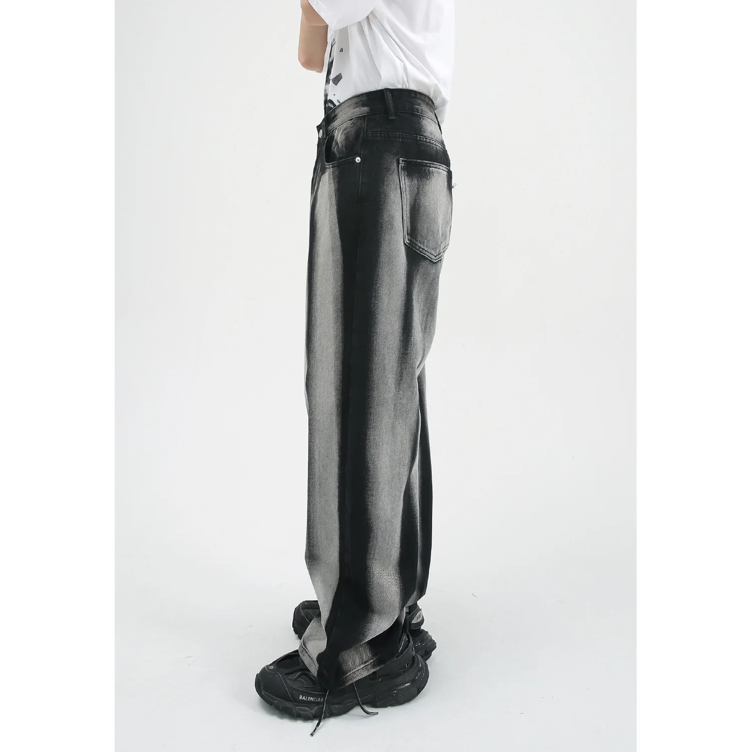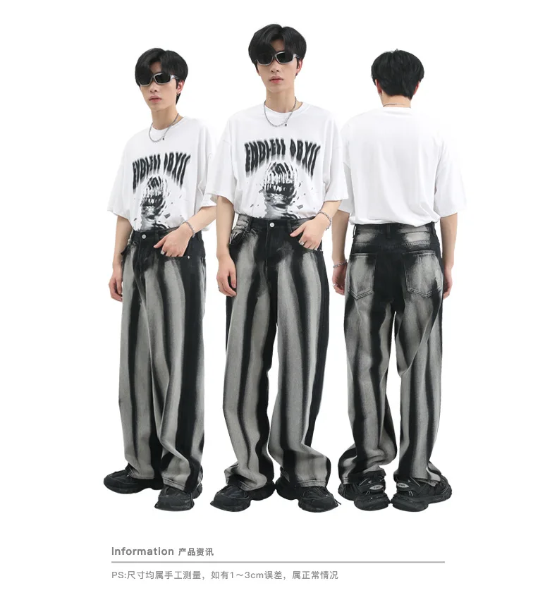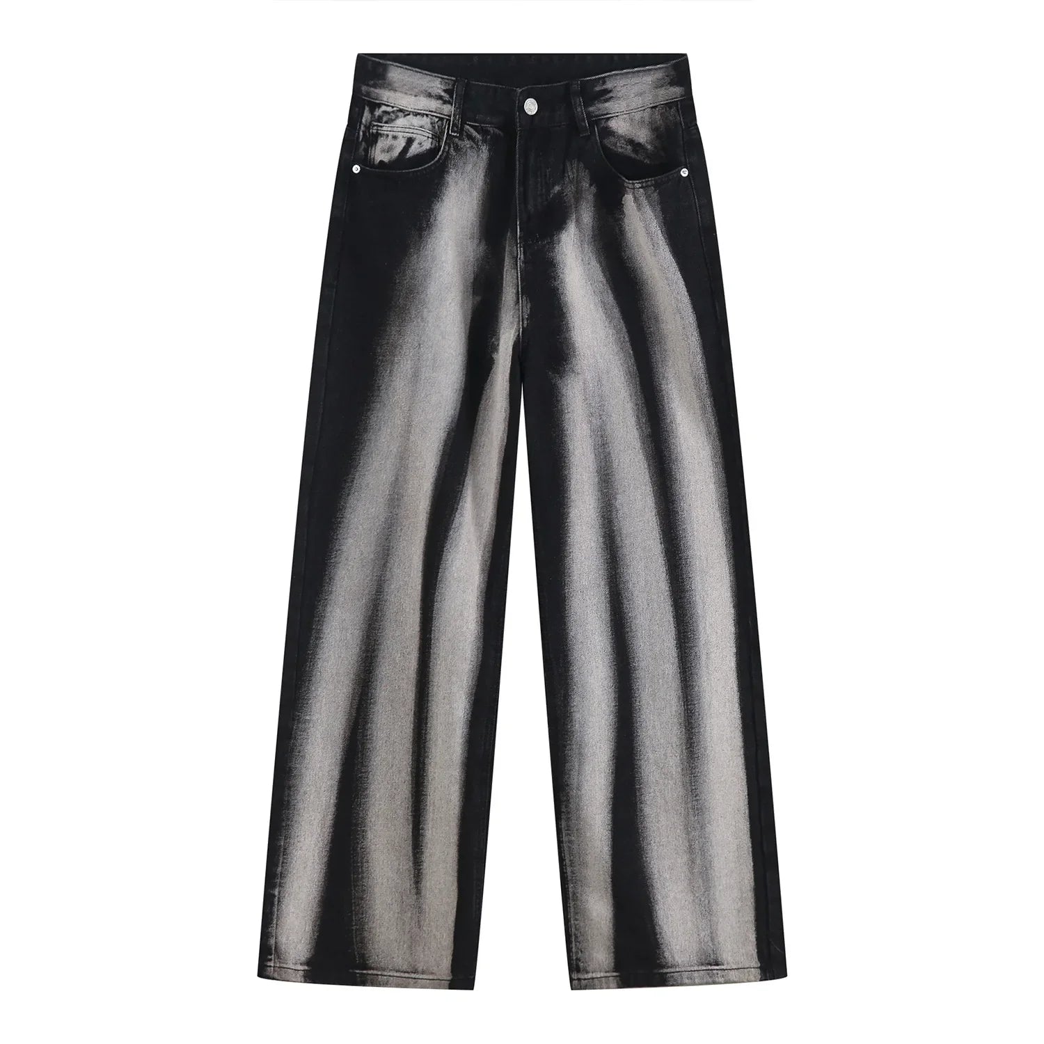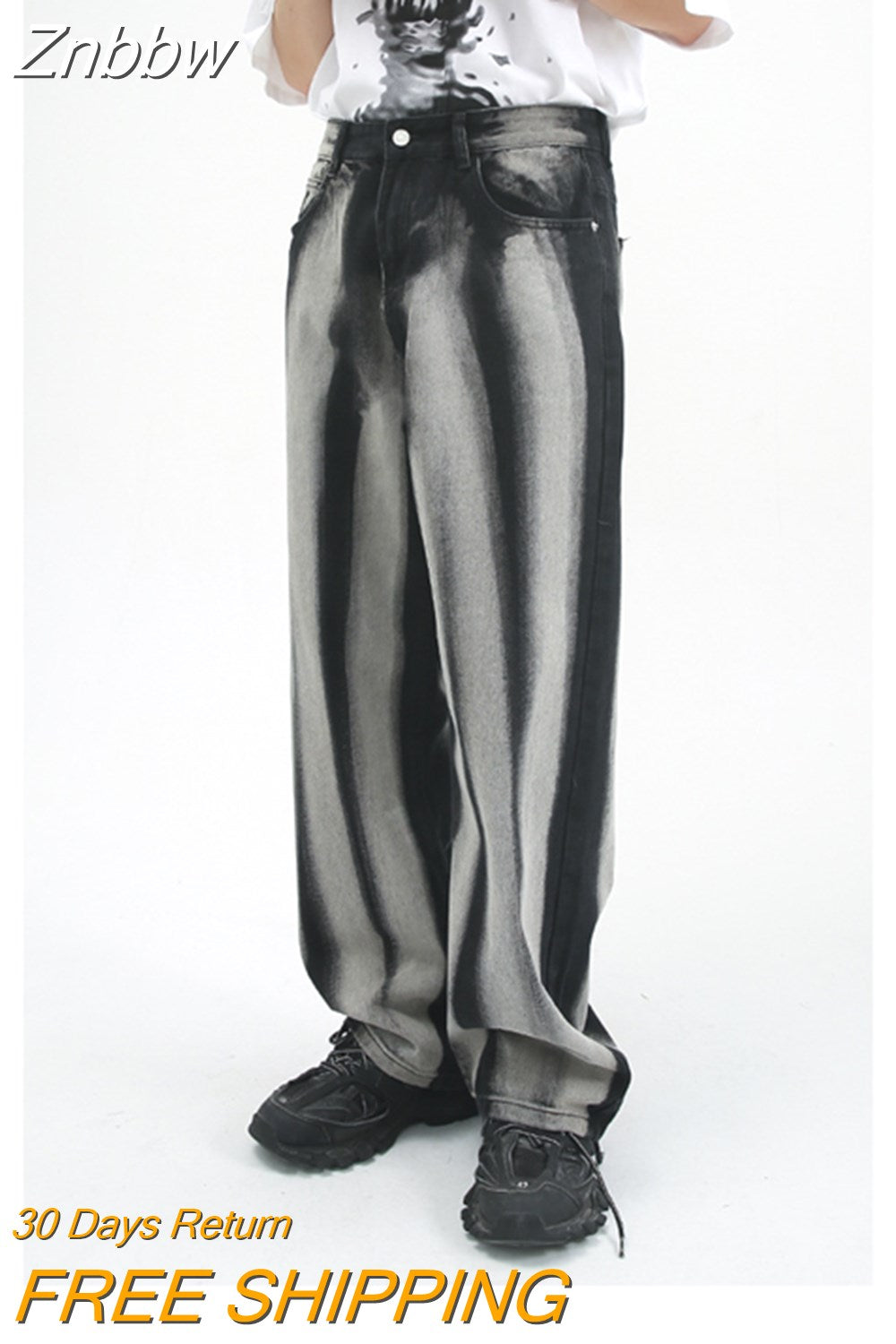 Znbbw Men's Baggy Wide Leg Jeans Unisex Vintage Washed Blue Denim Trousers High Waist Loose Straight Male Pants Harajuku Streetwear