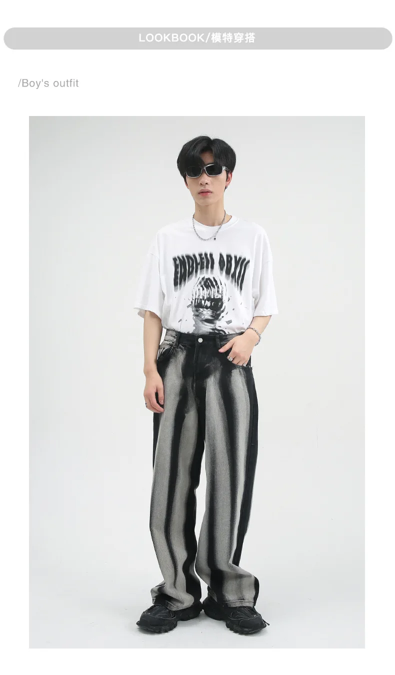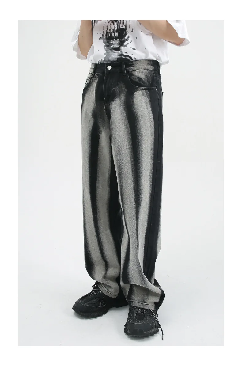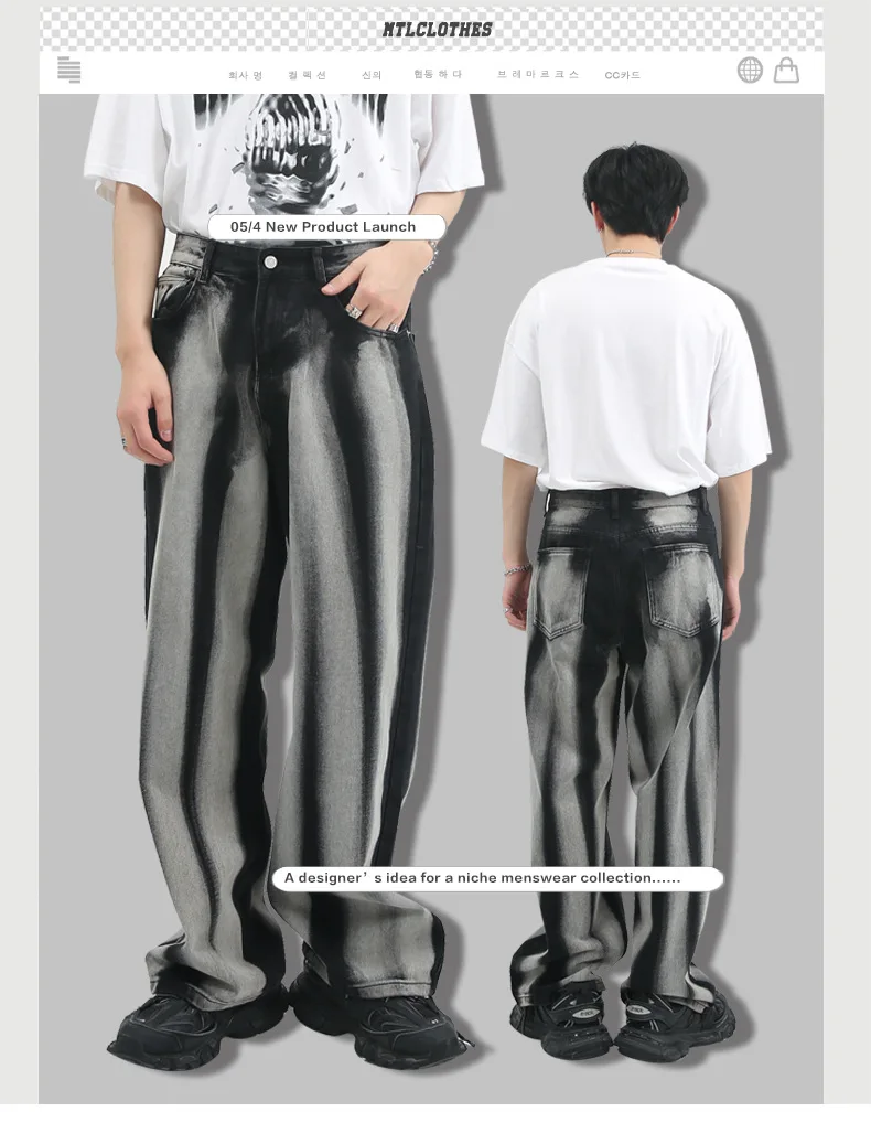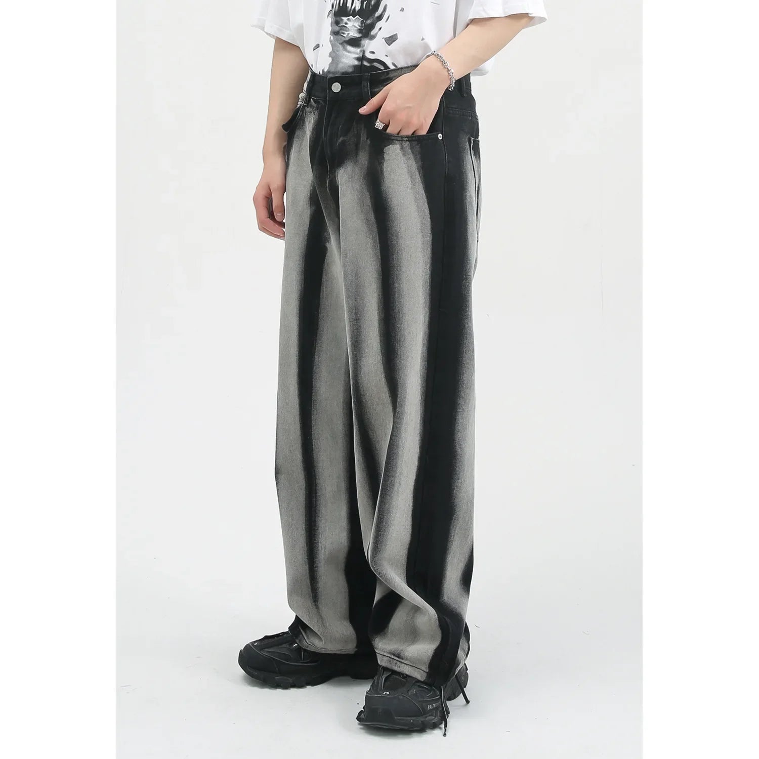 Znbbw Men's Baggy Wide Leg Jeans Unisex Vintage Washed Blue Denim Trousers High Waist Loose Straight Male Pants Harajuku Streetwear