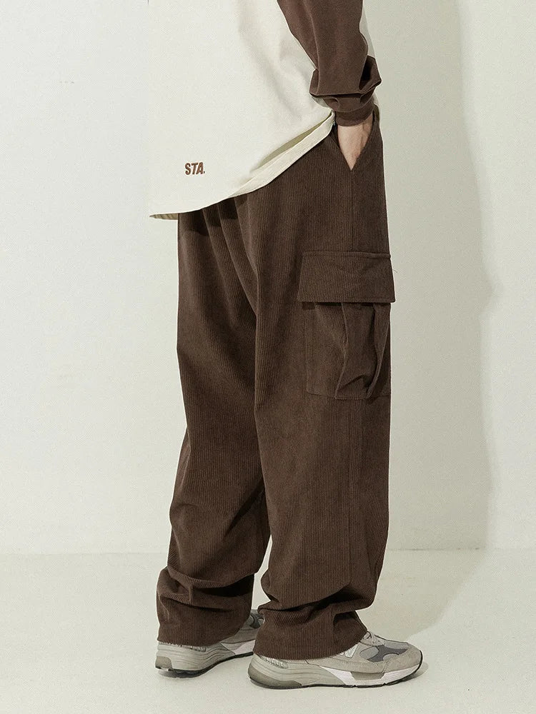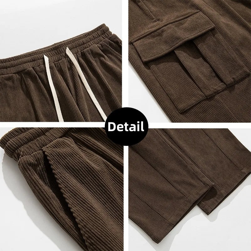 Znbbw Mens Corduroy Sweatpants Hip Hop Jogging Cargo Pants Loose Casual Pants Neutral Retro Streetwear Fashion Harajuku Trousers
