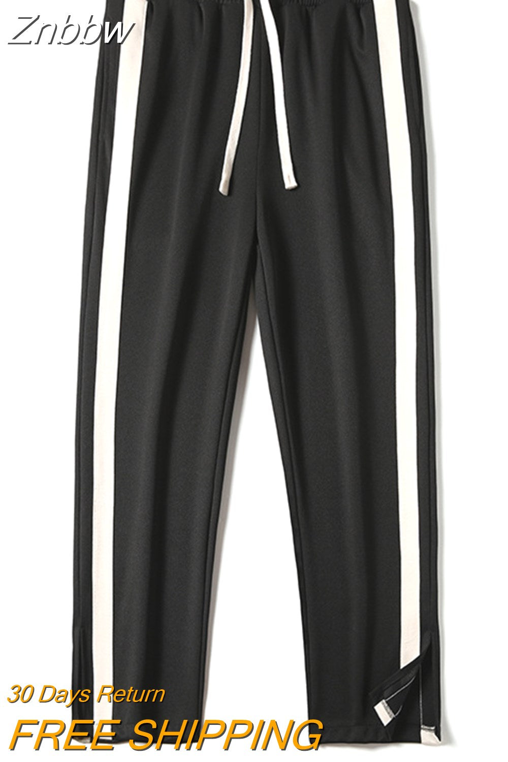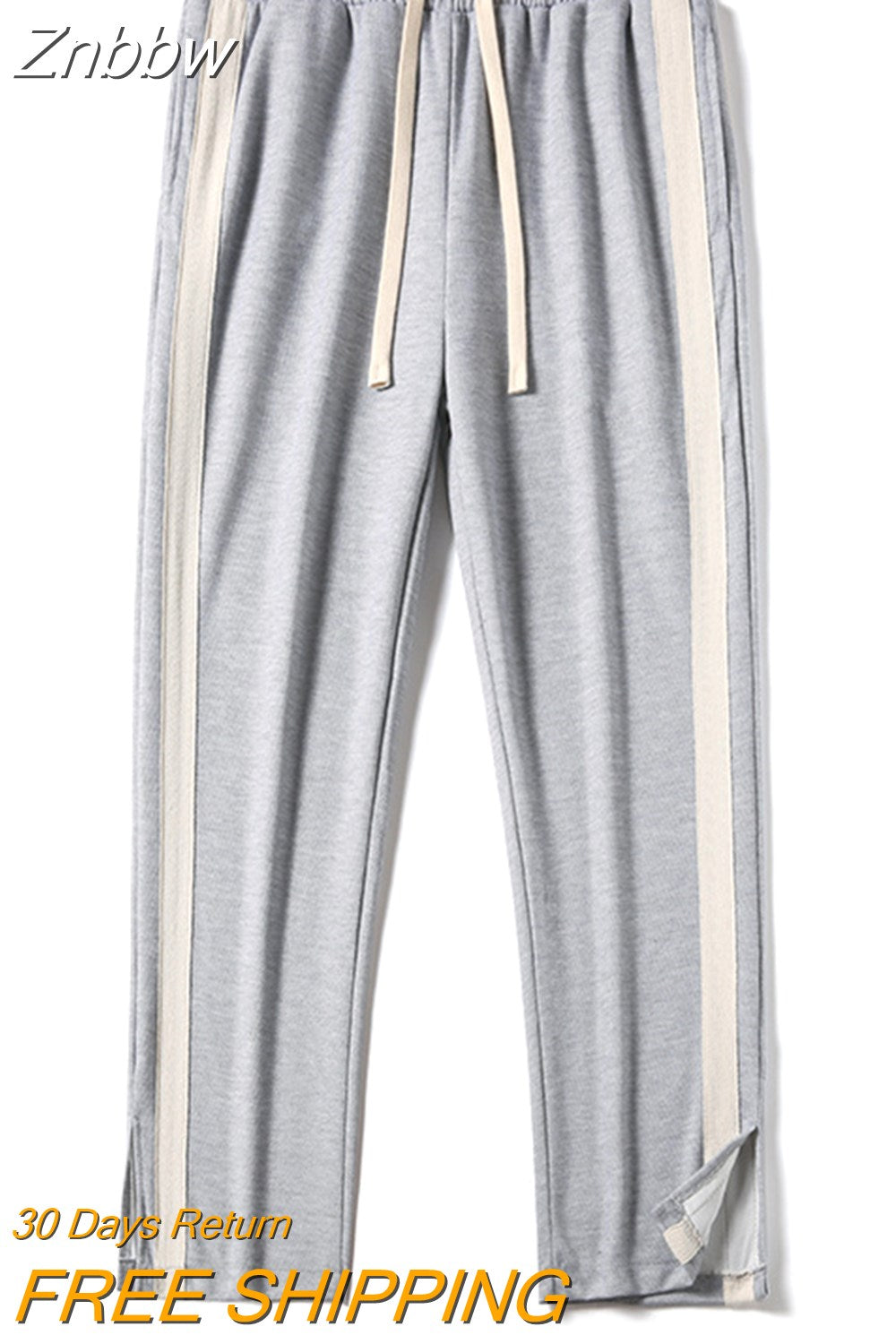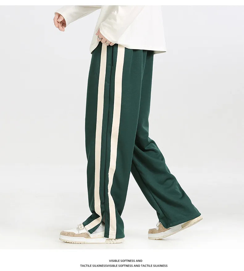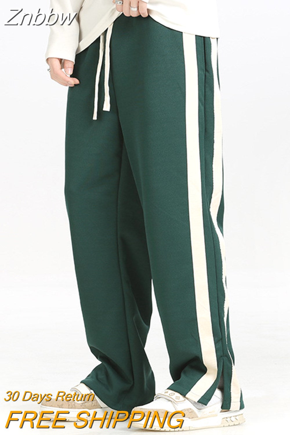 Znbbw Men's Striped Slit Pants Spring Autumn Straight Wide Leg Trousers High Street Loose Casual Trousers 2023 Fashion Men Clothing