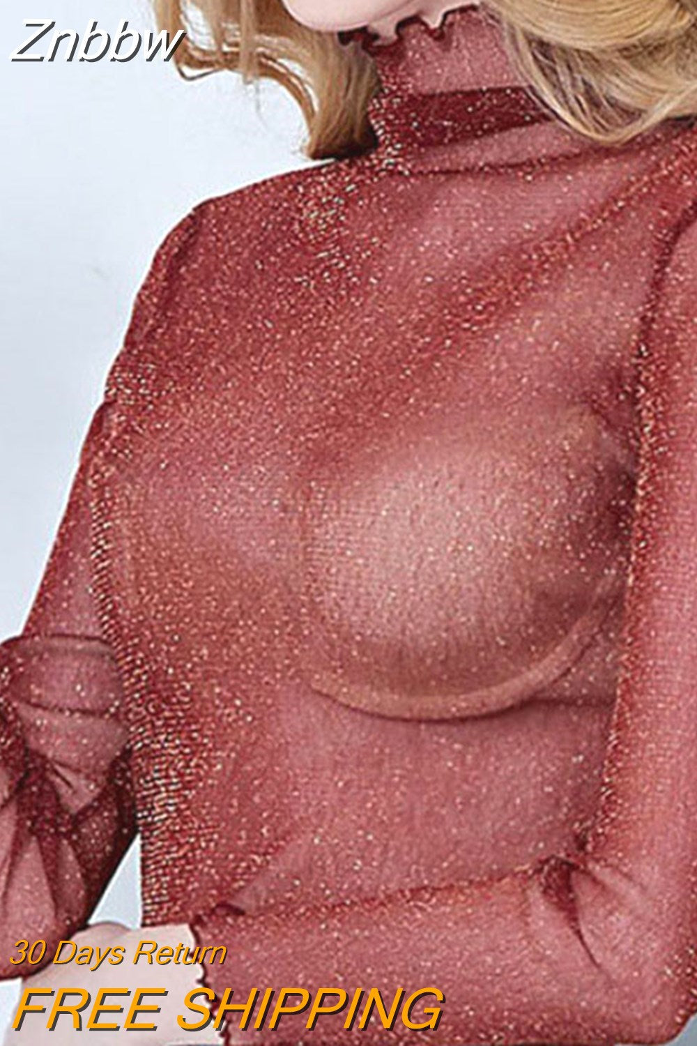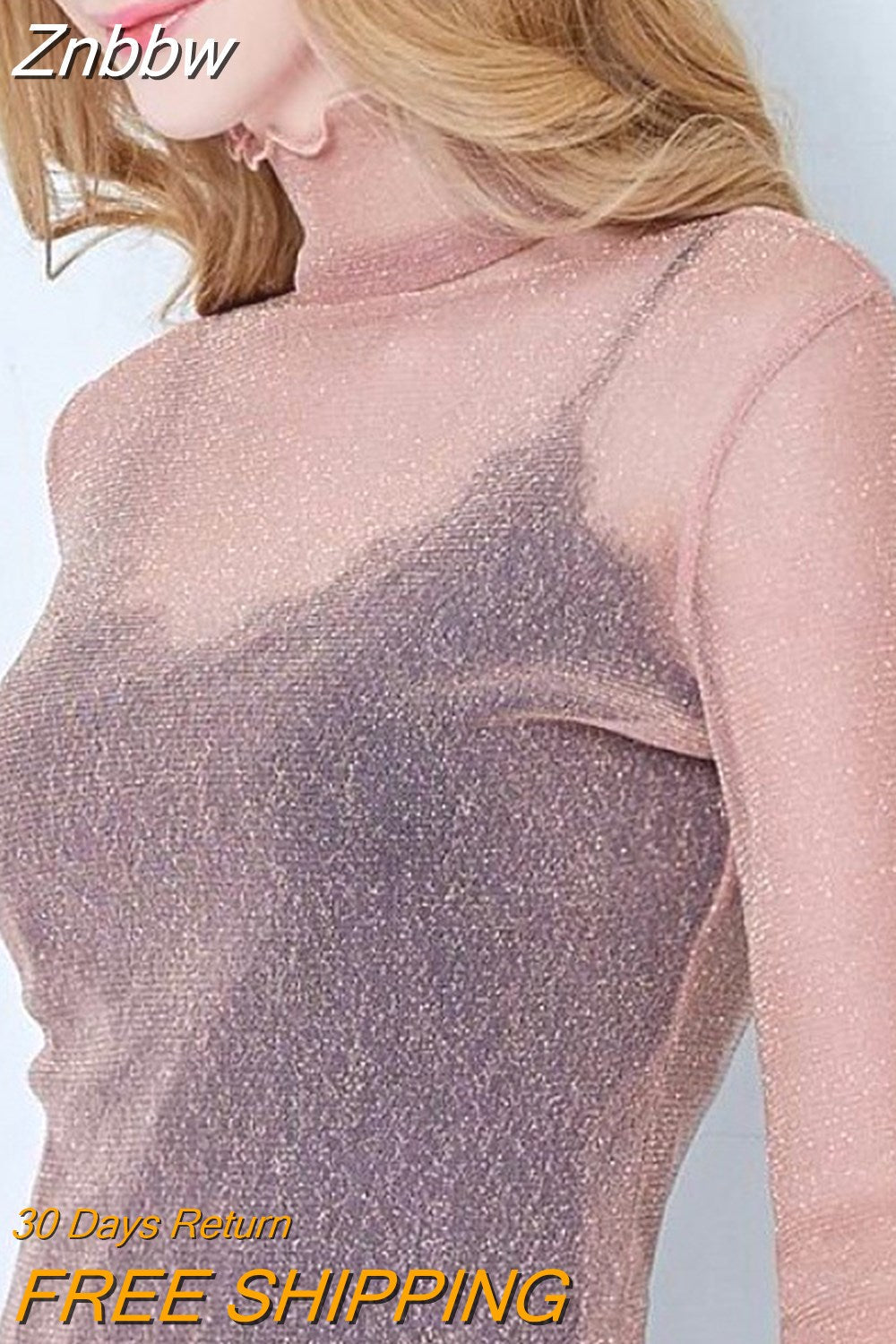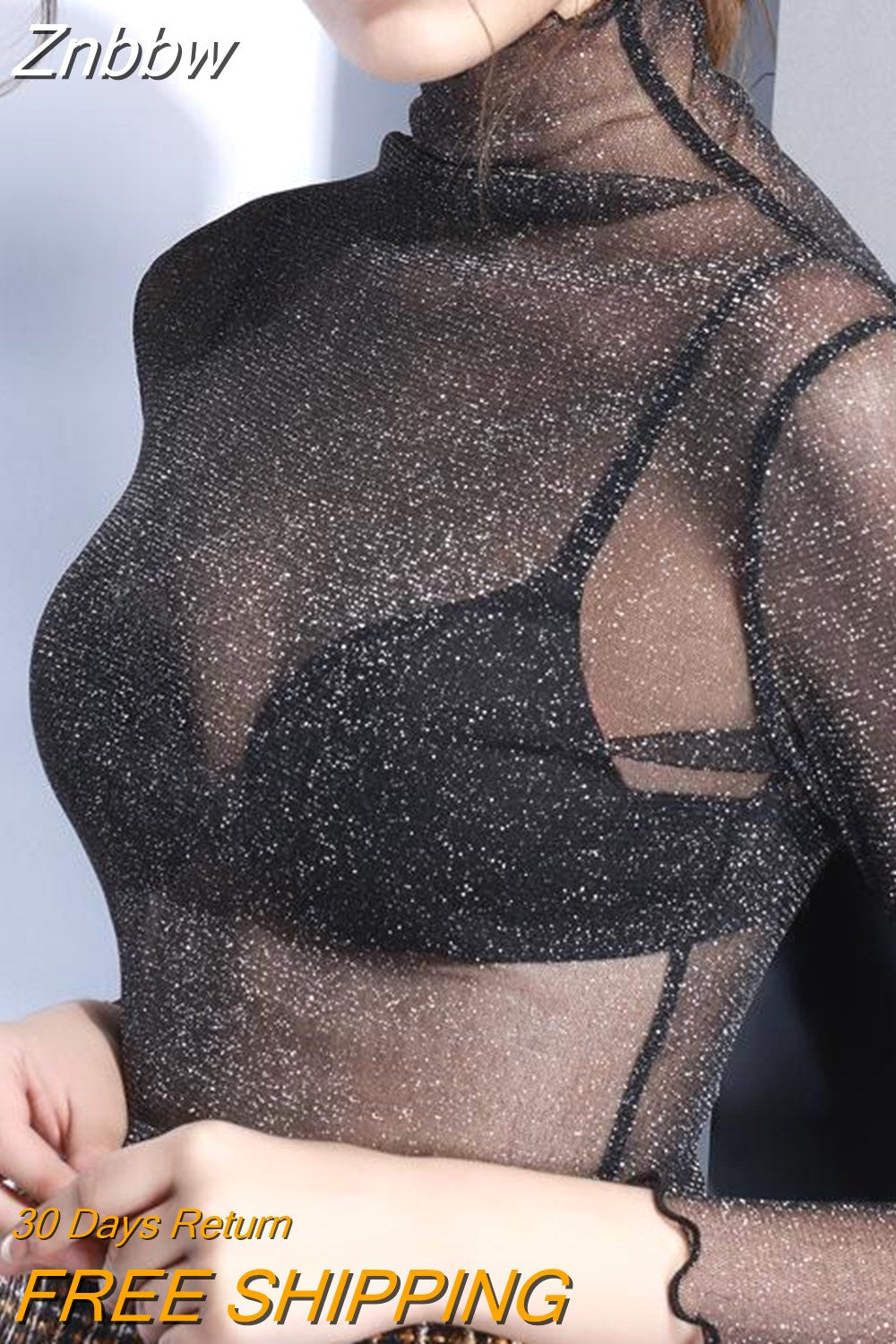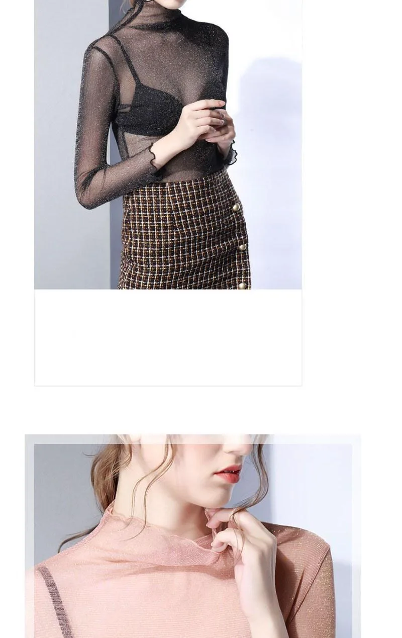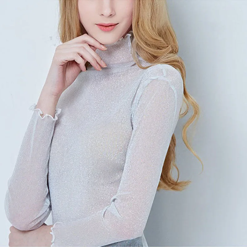 Znbbw Mesh Tops Long Sleeve Woman T-shirts Female Lace Tops Transparent See Through Ladies T- Shirt Femme T-shirts