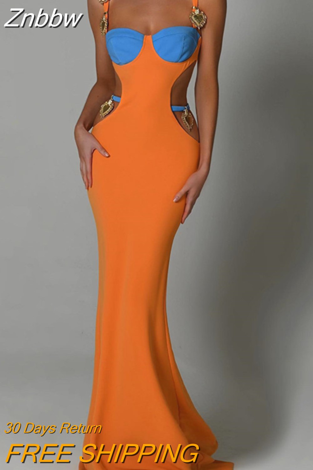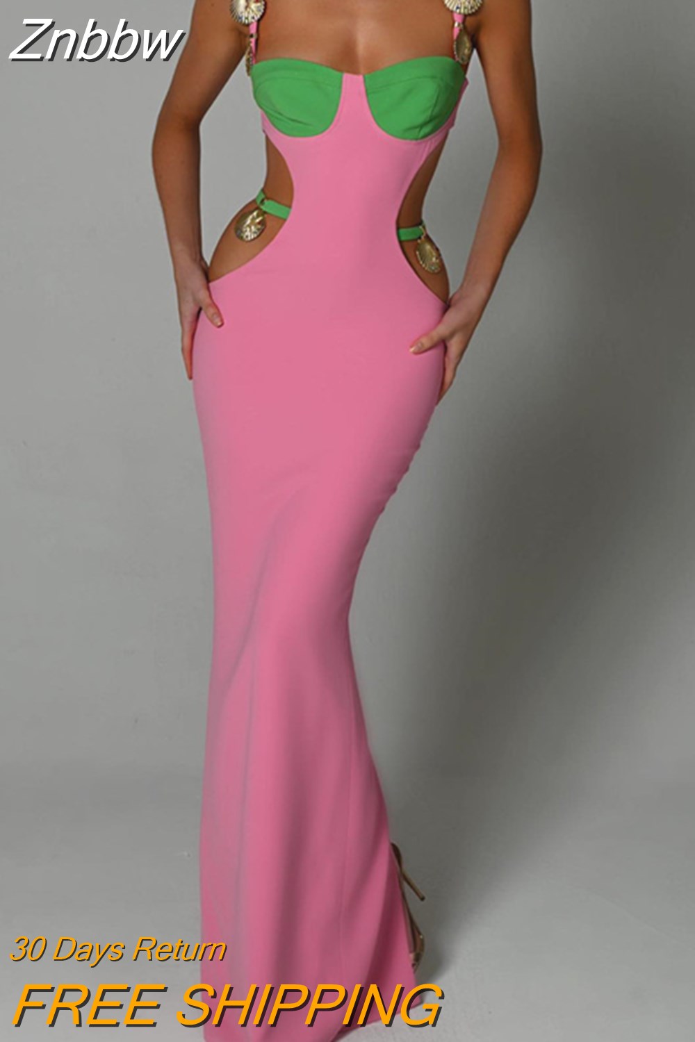 Znbbw Metal Shell Patchwork Hollow Out Mini Dress Women Robe Elegant Spaghetti Strap Zipper Bodycon Party Dress Vestido