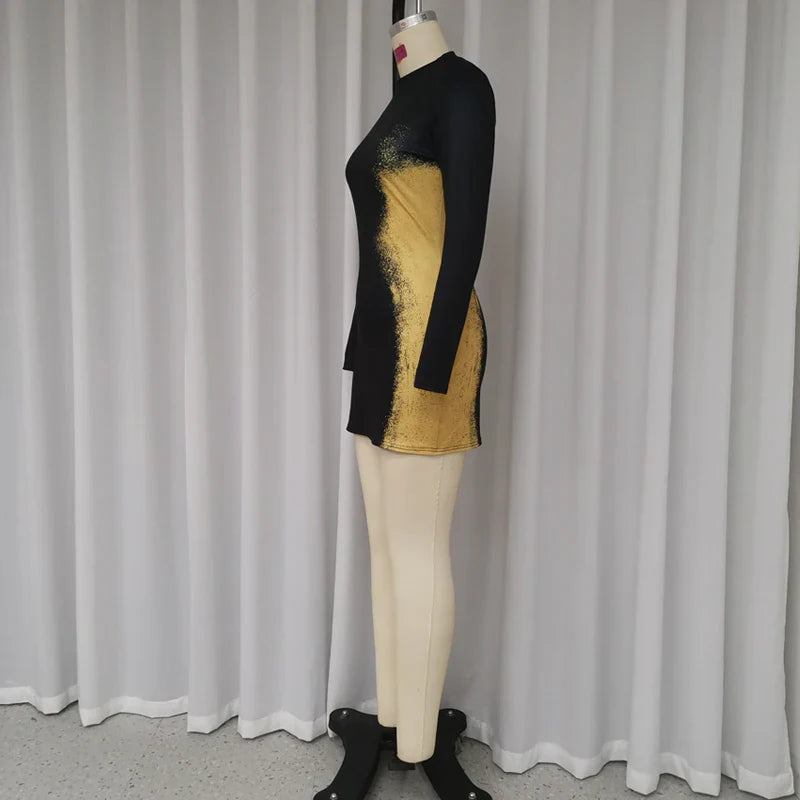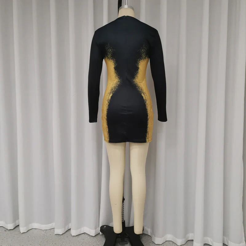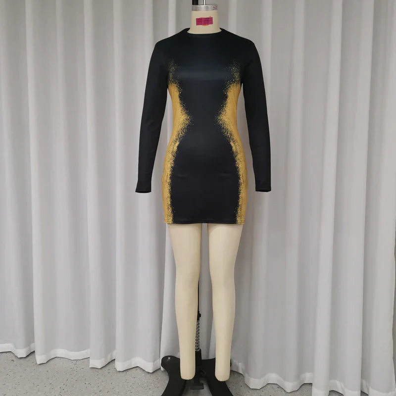 Znbbw Mini Dresses Women Autumn Fashionable Printed O Neck Full Sleeve Party Dress Sexy Elegant Bodycon Short Skirt Streetwear