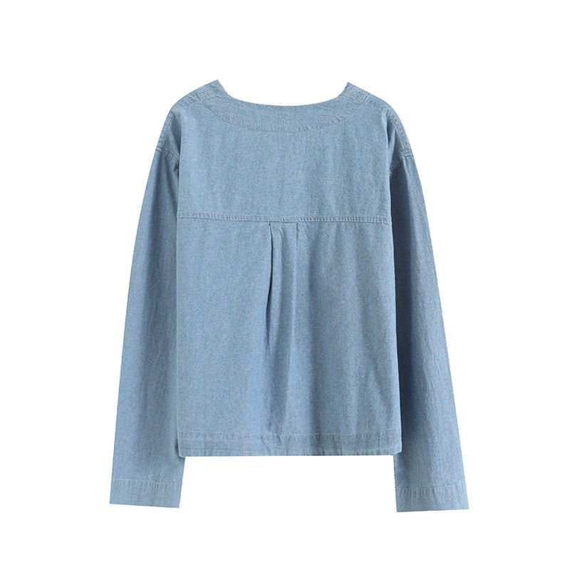 Znbbw New French Short Version V-Collar Shirt A-Shaped Skirt Pull-Rope Straight Jeans