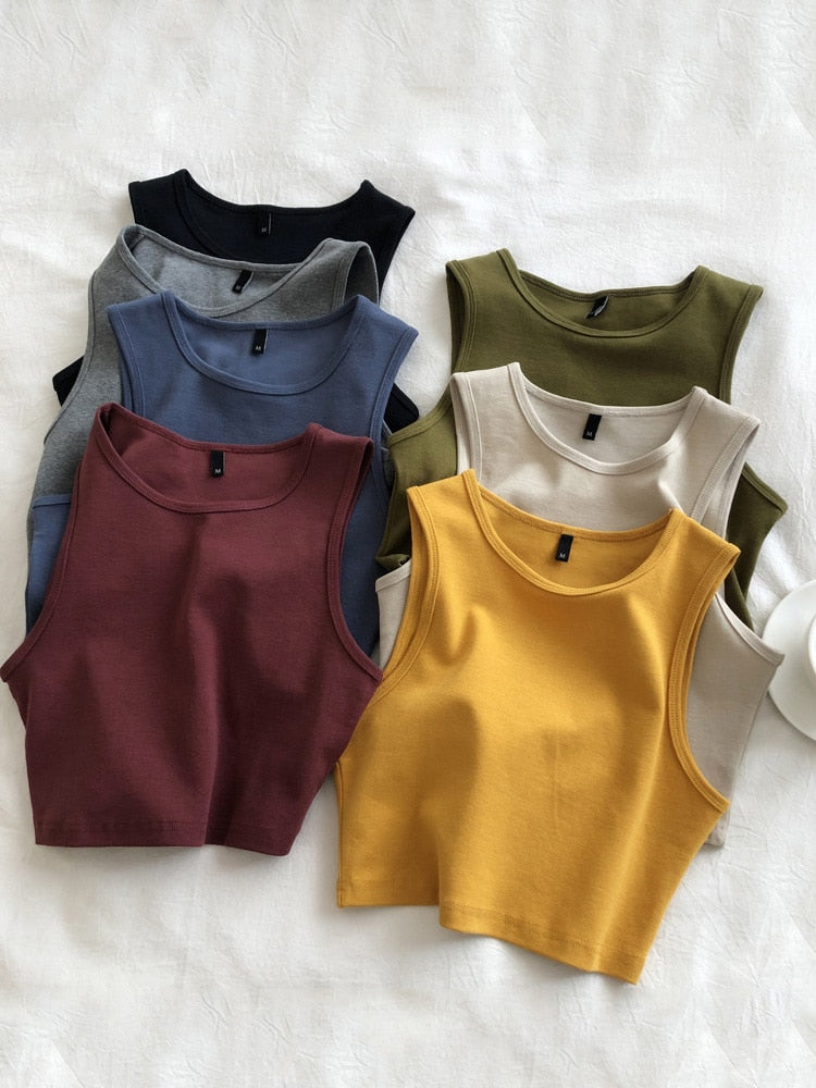 Znbbw new ladies retro crop top high waist slimming stretch slim short sleeveless bottoming top