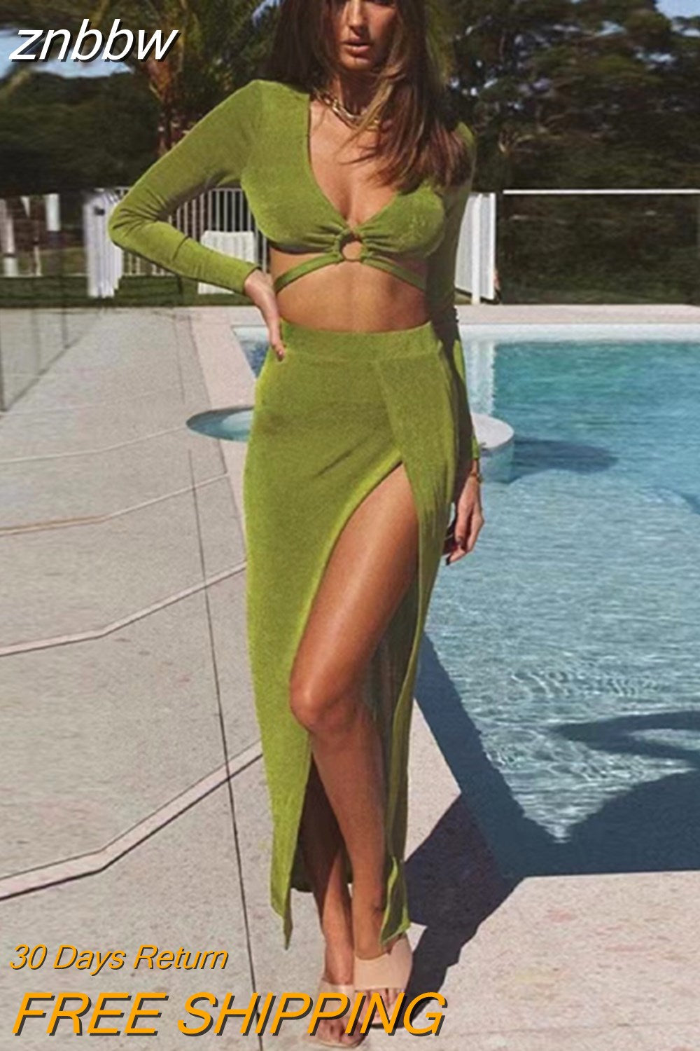 znbbw New Long Sleeve Bandage Dress Sets Elegant Women Top And Skirts Sexy Club Split Skirts Two Piece Set Summer Fashion Outfits