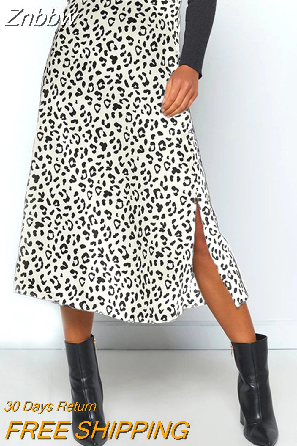 Znbbw New Sexy Leopard Print Chiffon Split Skirt Casual Fashion Long Skirts for Women Spring Summer Zip Elegant Female Skirt