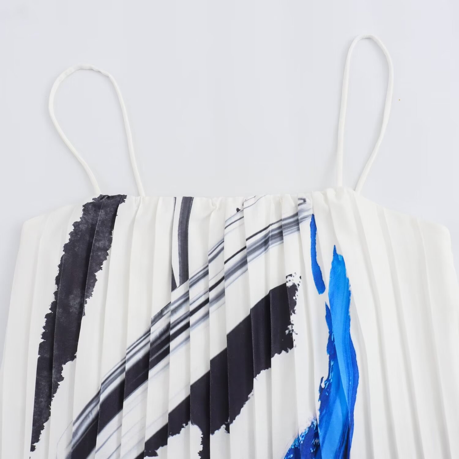 Znbbw New Street Style Printed Small Pleated Suspenders Dress 0264057