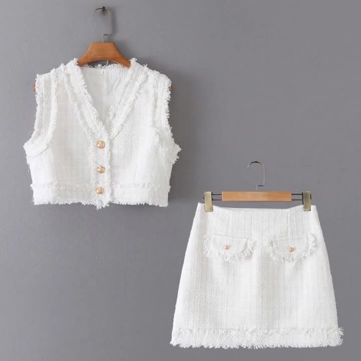 Znbbw New Woolen Short Vest Woolen Mini Skirt Suit