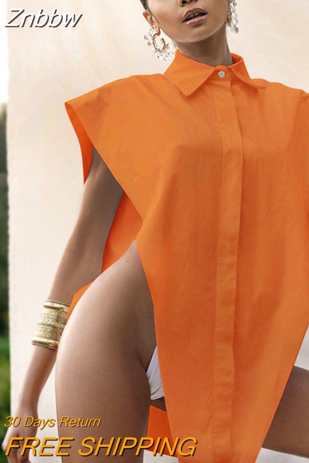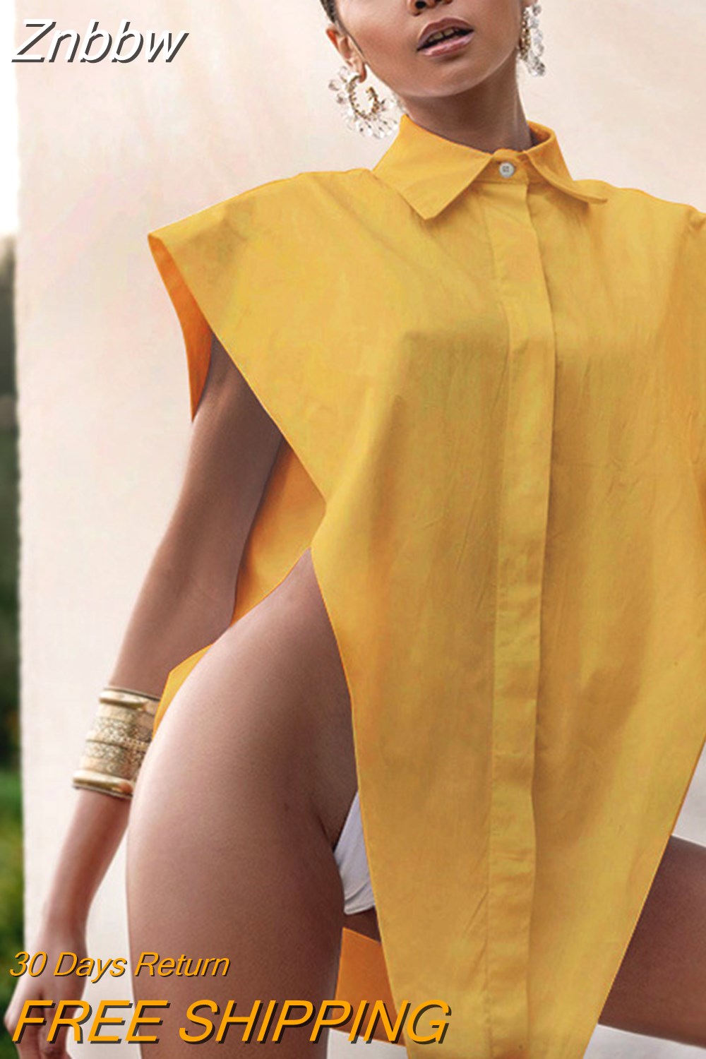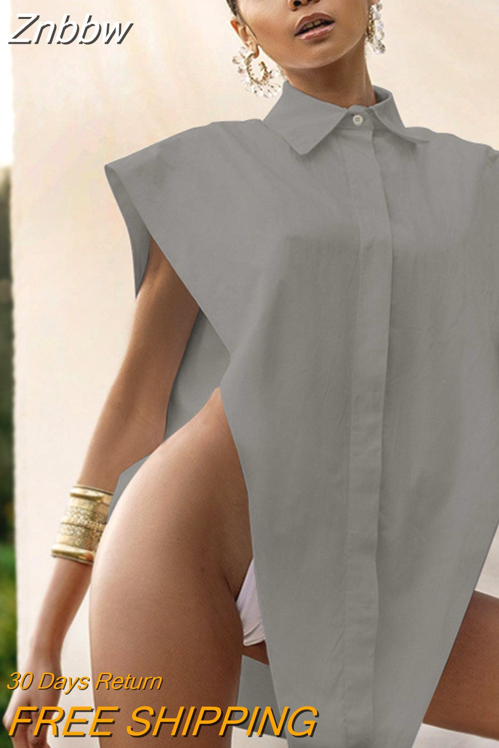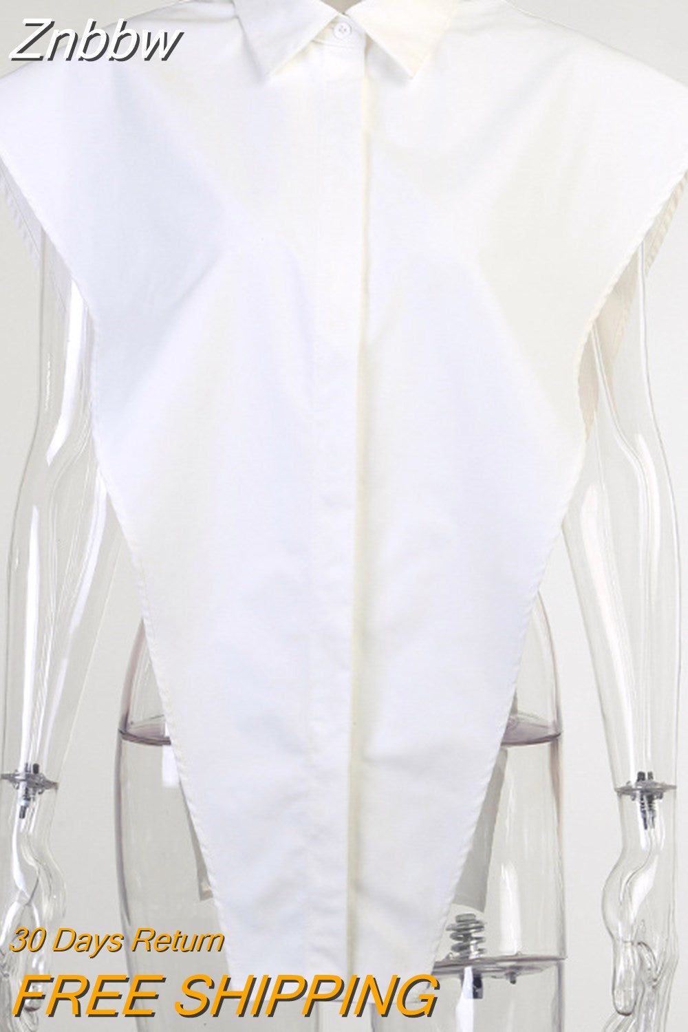Znbbw Novelty Tops Sexy Cut Out Side Button Up White Shirt Women Fashion Clothing Sleeveless Oversized Shirts