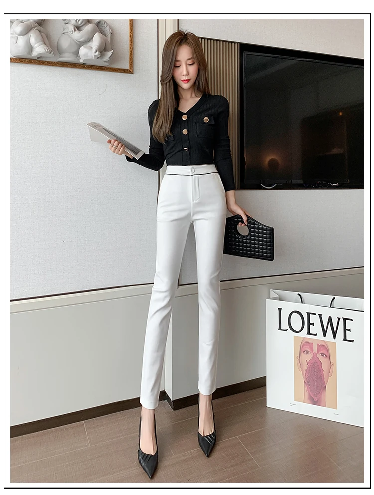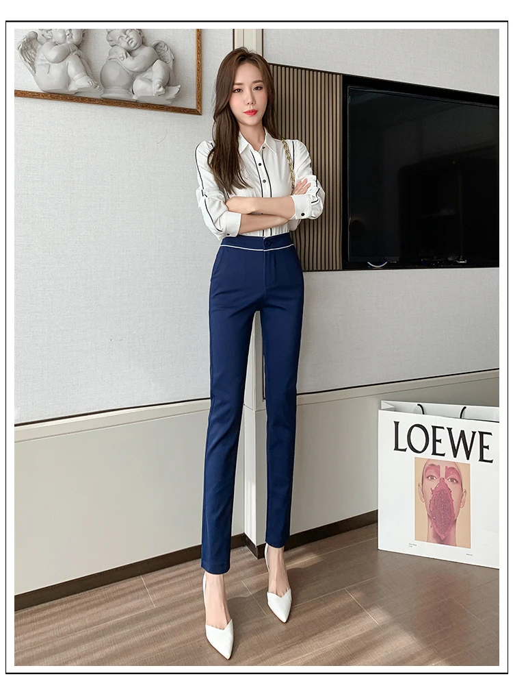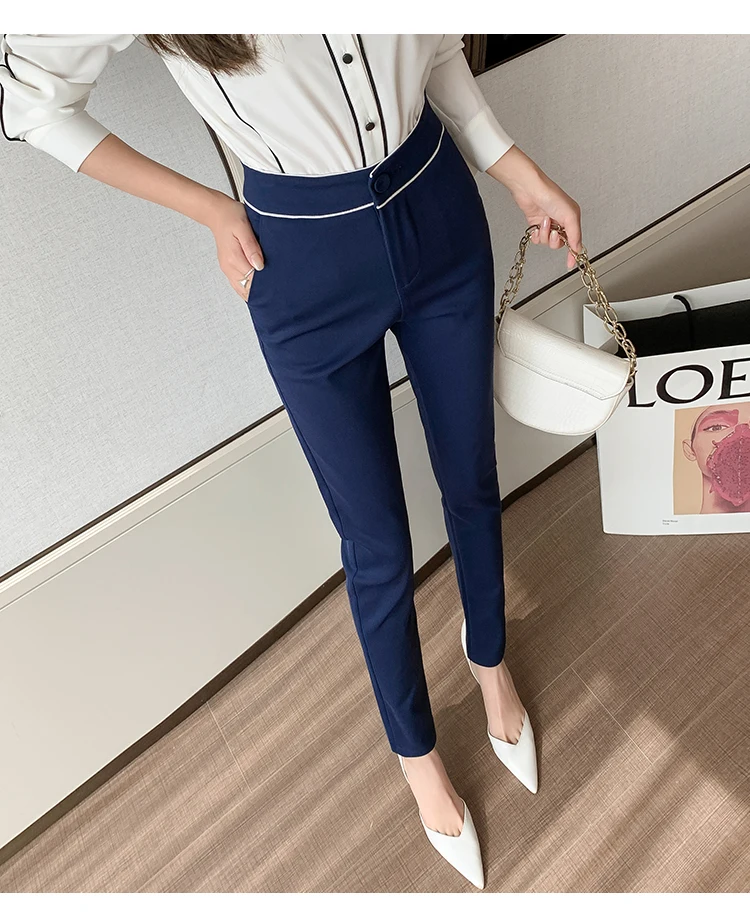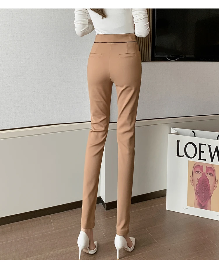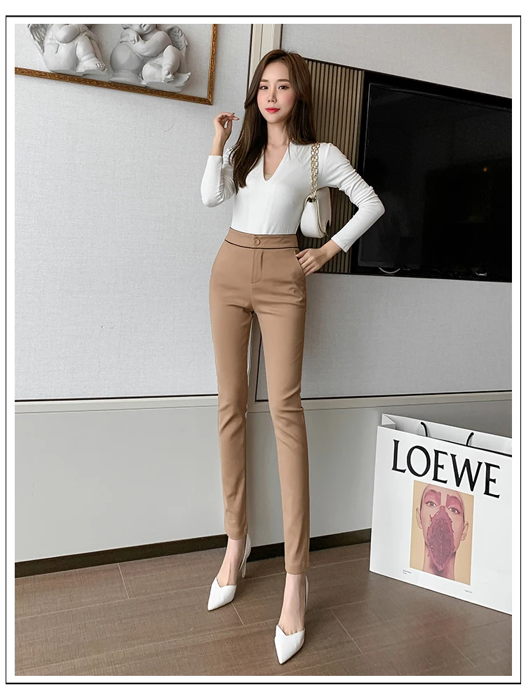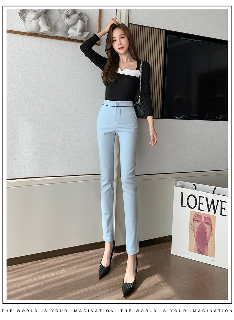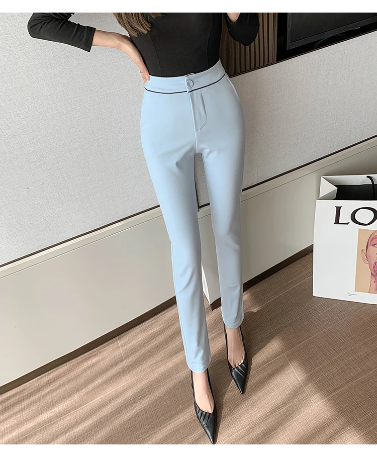 Znbbw Office Lady Formal Slim Suit Pants Women Stretch Mid-Waist Straight Trousers Femme Korean Vintage Casual Pencil Pants