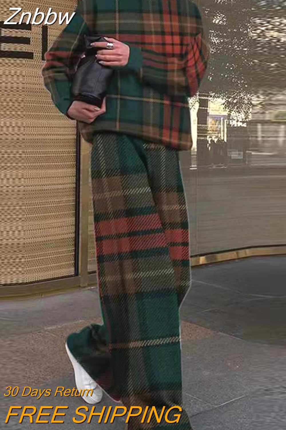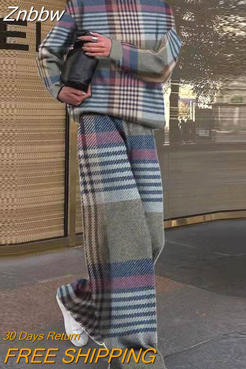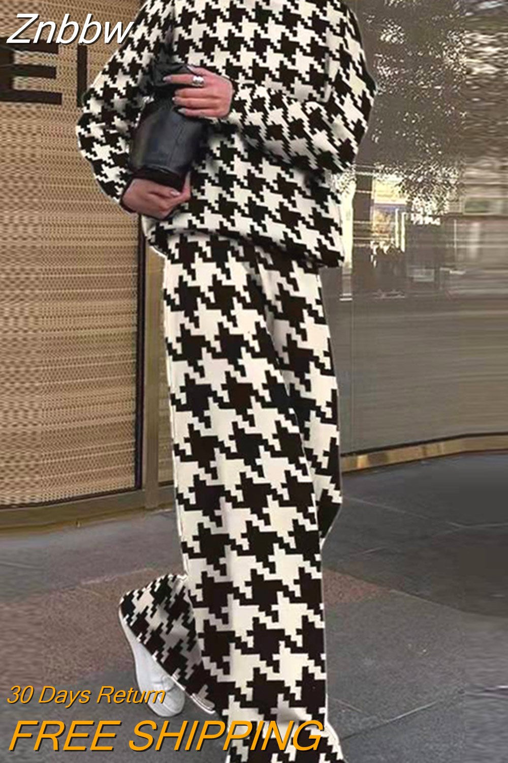 Znbbw Office Loose Suit 2023 Fall Retro Pattern Print Two Piece Set Women Turtleneck Long Sleeve Top and Straight Pants Outfit