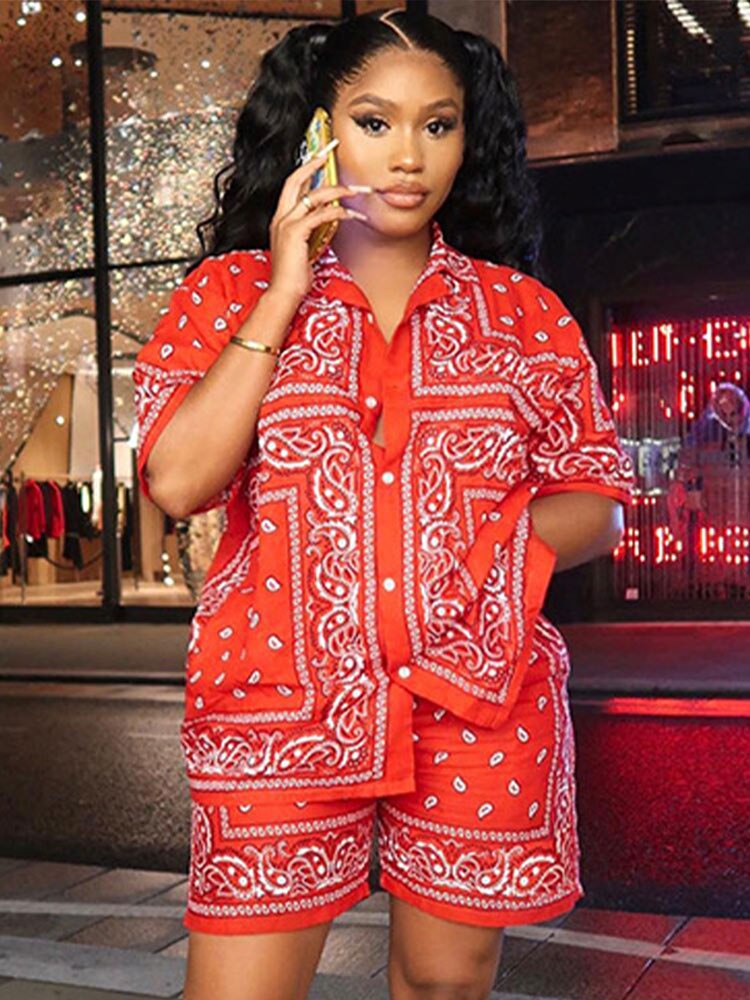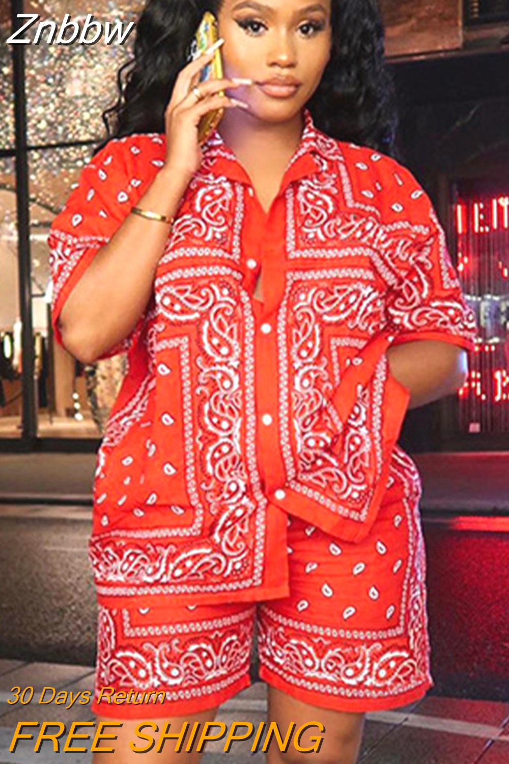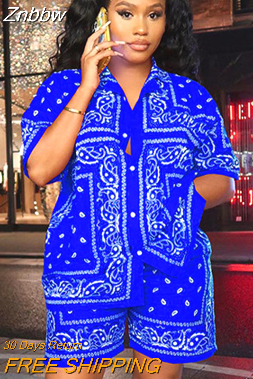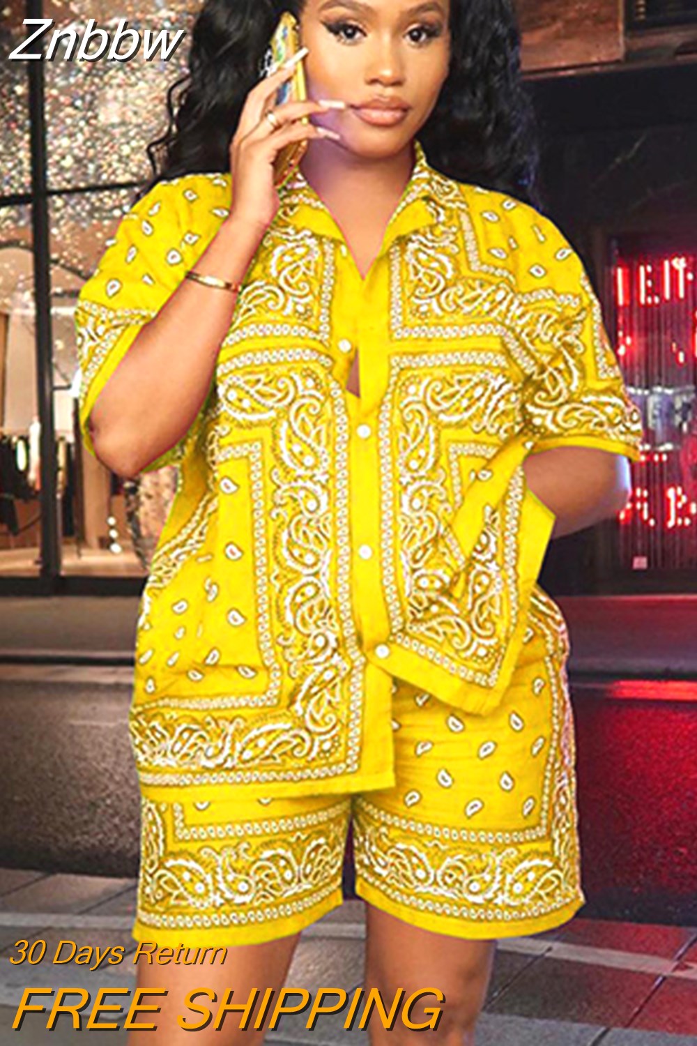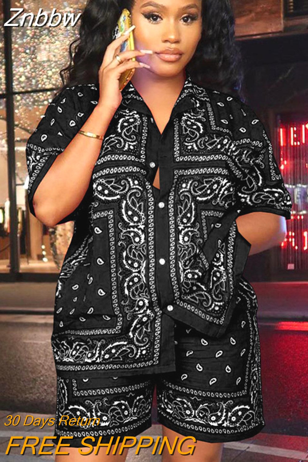 Znbbw Paisley Print Tracksuit Women Short Sleeve Single Breasted Shirt Shorts Two Piece Sets Female Fashion Outfits 2023 Summer