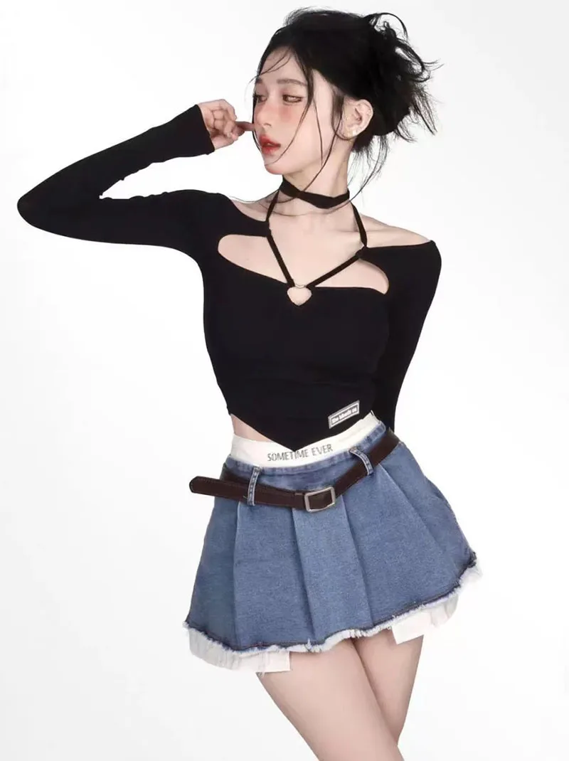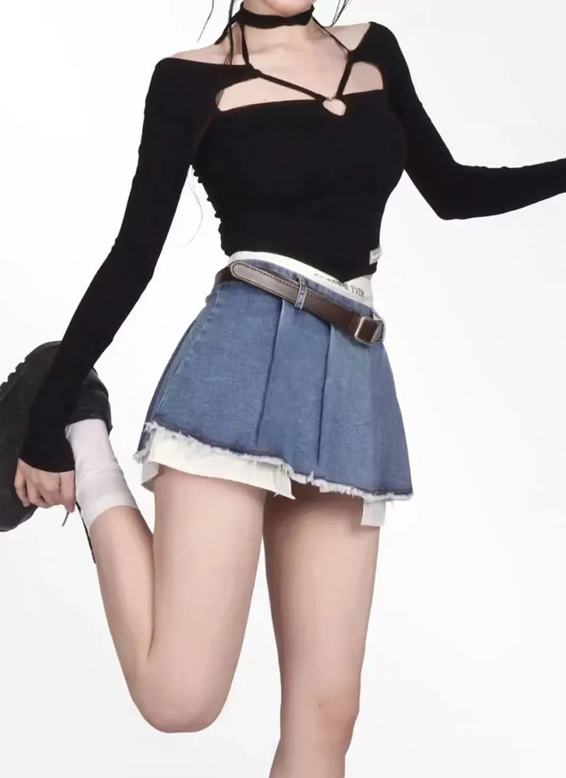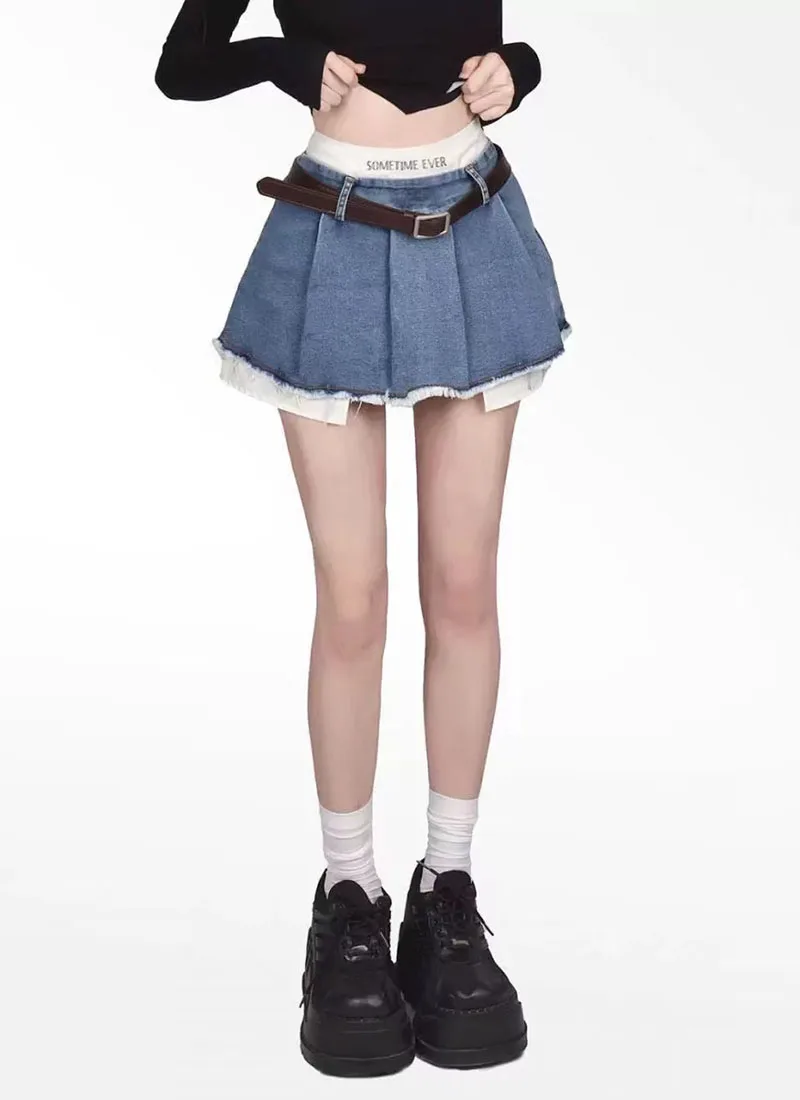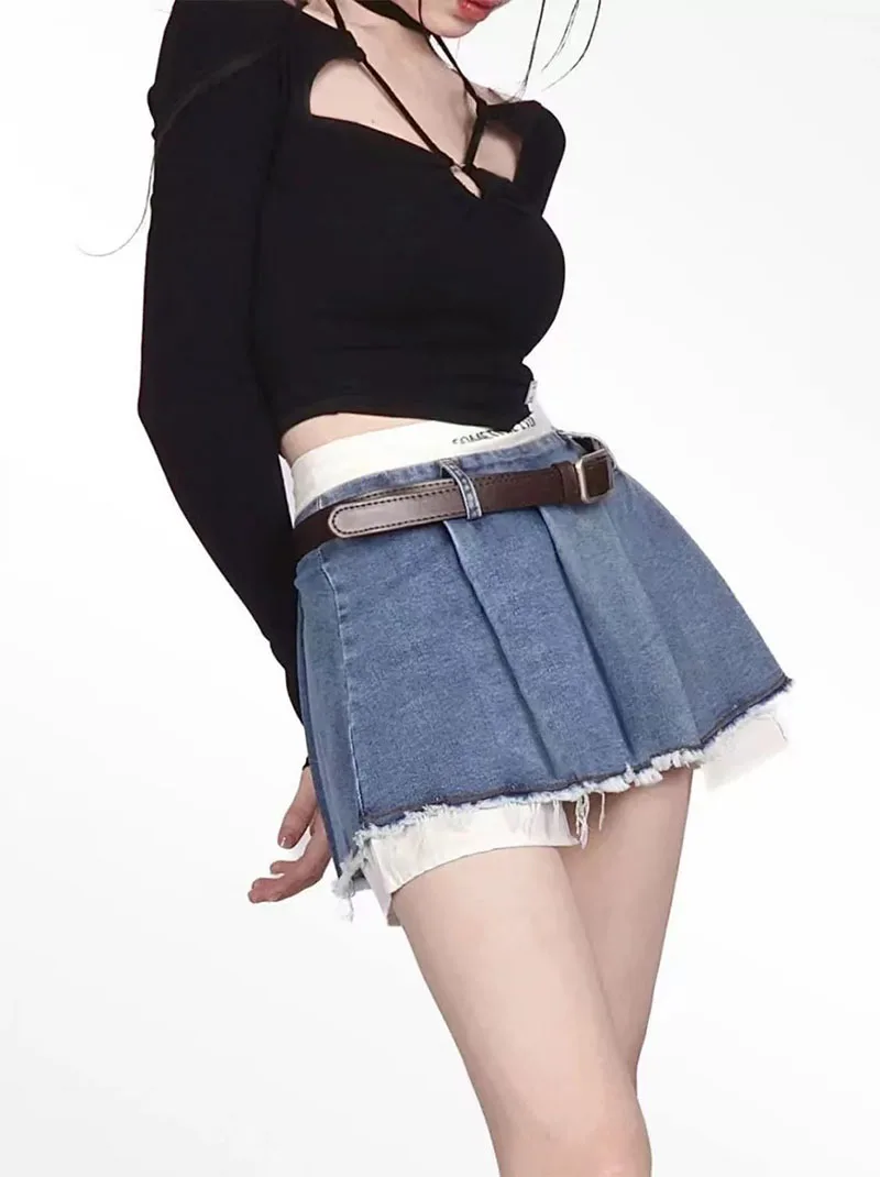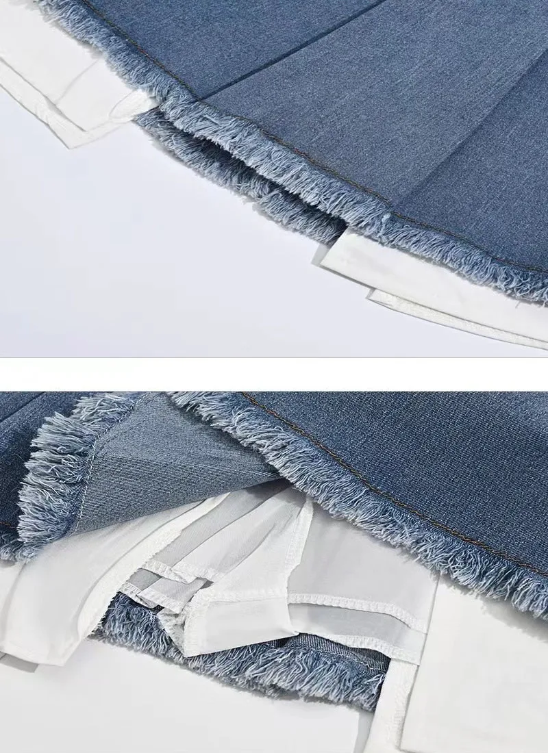 Znbbw Patchwork No Belt Denim Skirts Y2K Summer High Waist Streetwear Irregular Mini Skirts Female Korean Tassels Jean Skirts