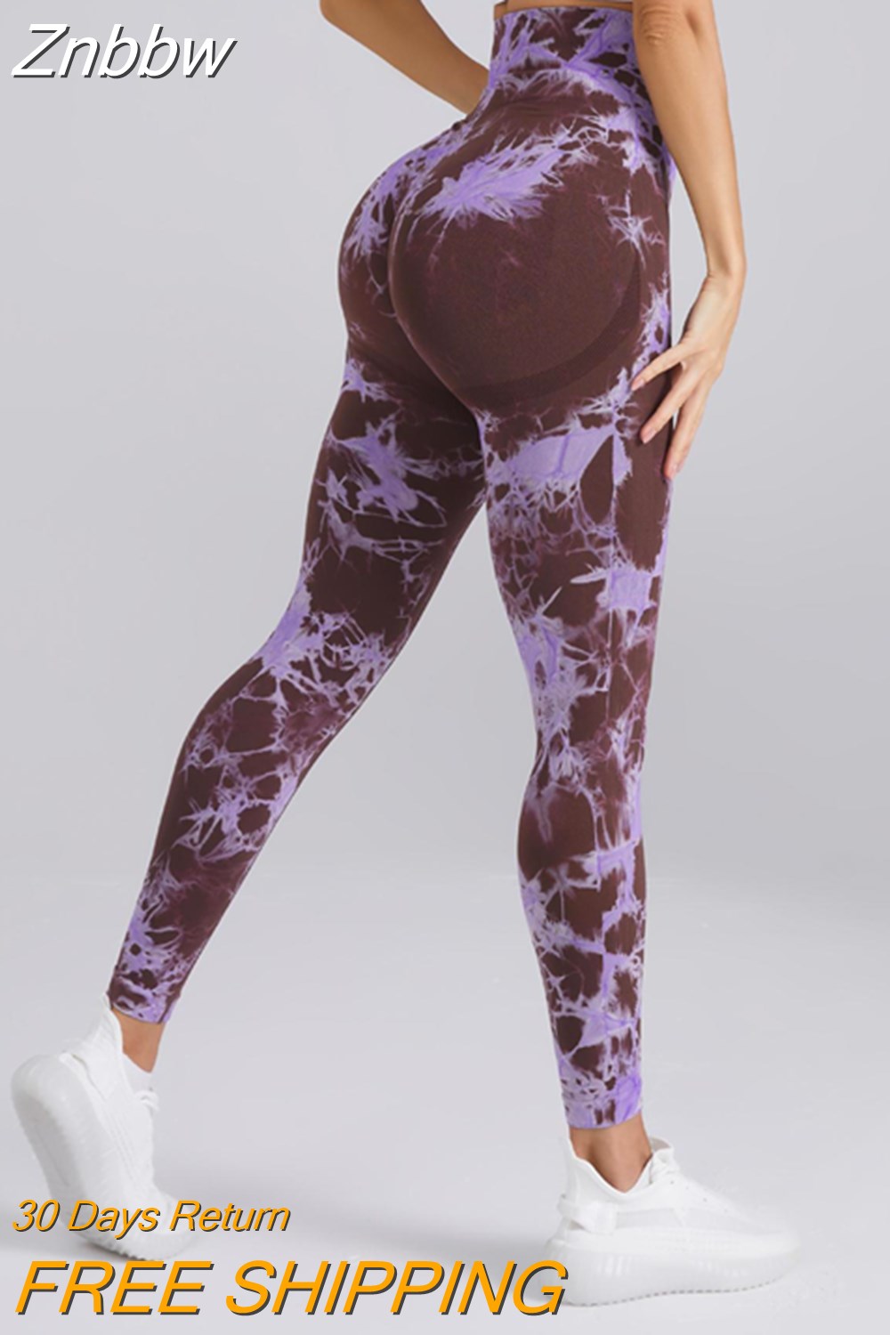 Znbbw Peach Yoga Pants Women's Dual Color Tie Dye Tie Float High Waist Sports Leggings Lifting Hip Running Fitness Leggings