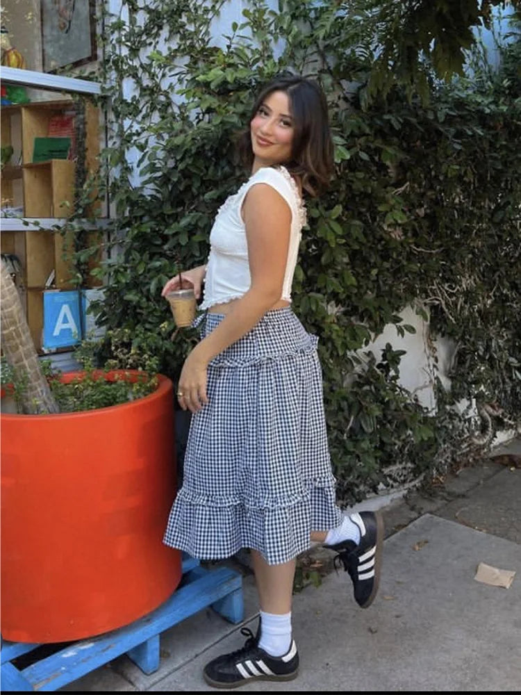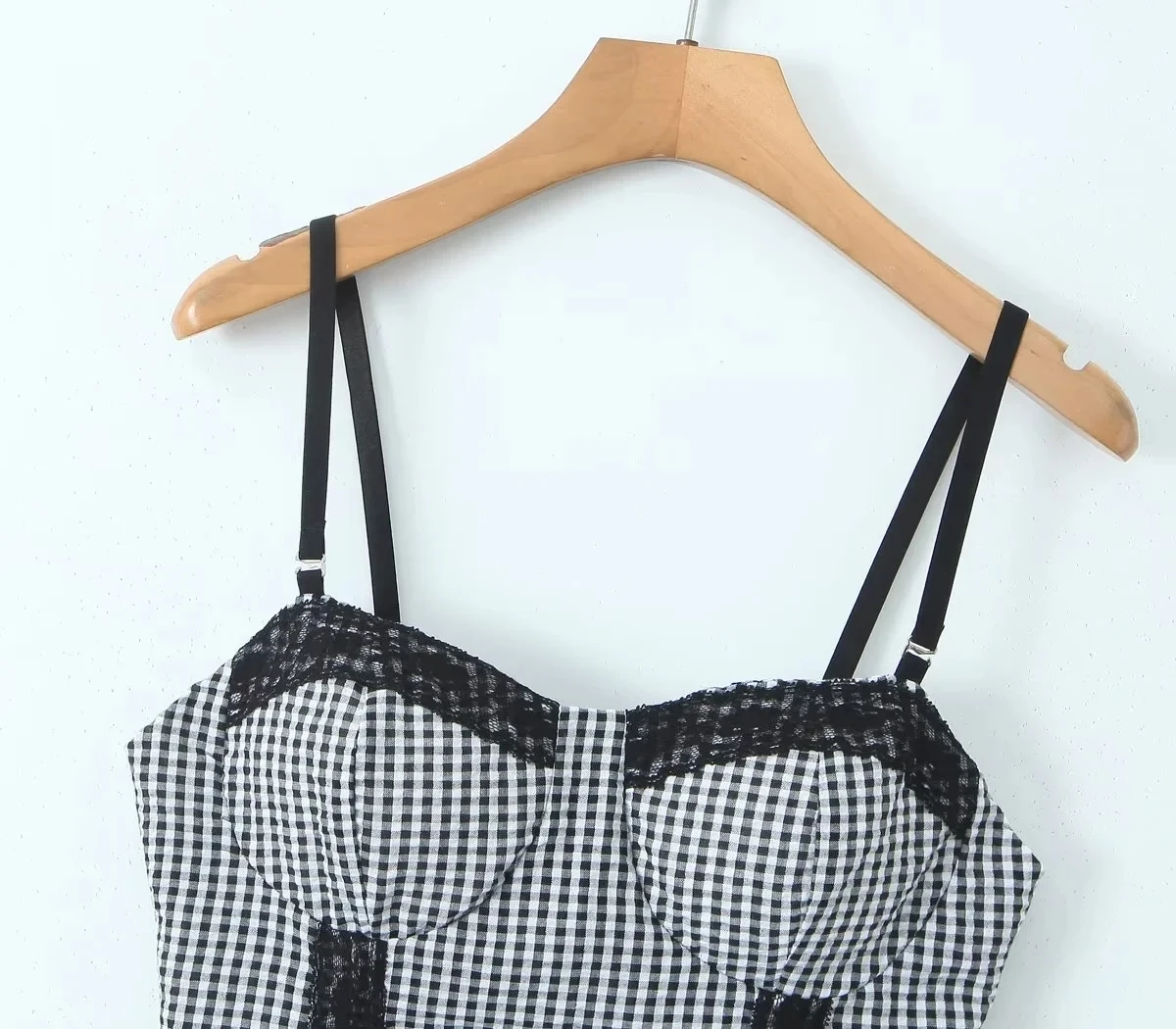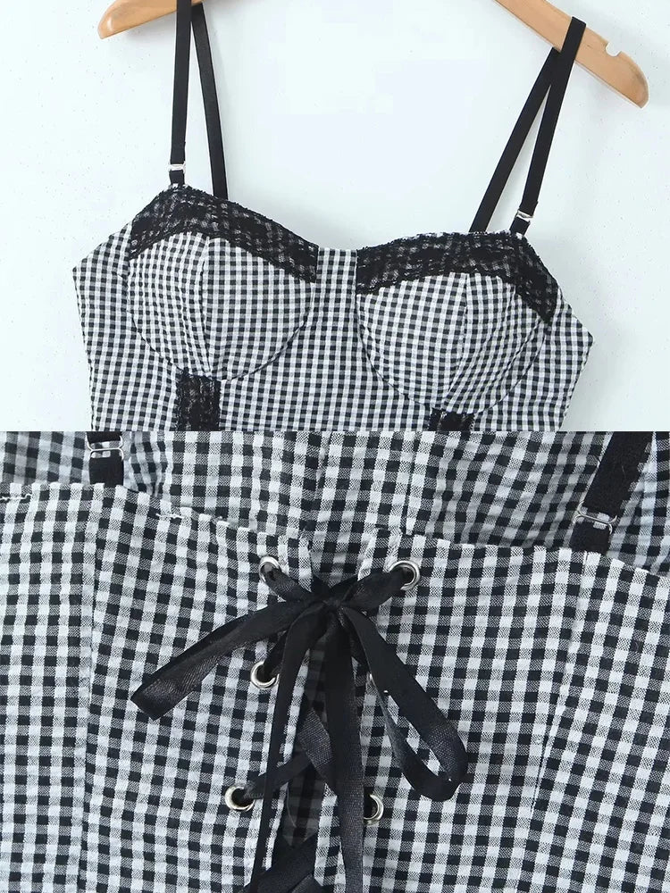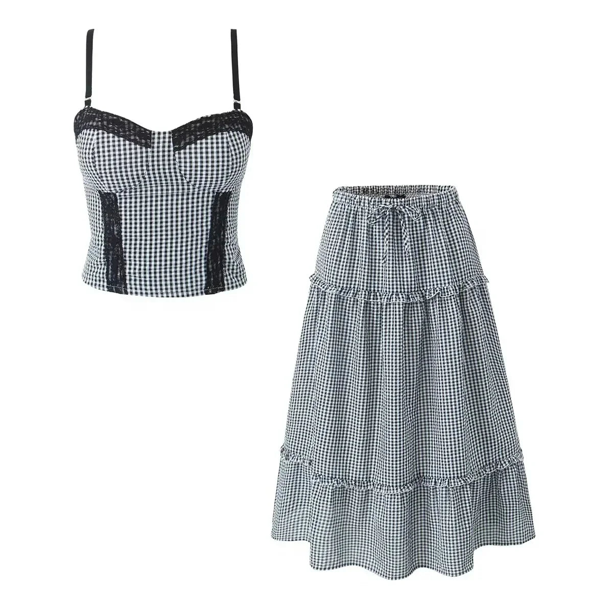 Znbbw Plaid Printed Y2K Summer Outfits Set Women Summer Chic Skirt Set Top+skirt Matching Set 2024 Black Party Beach Dress