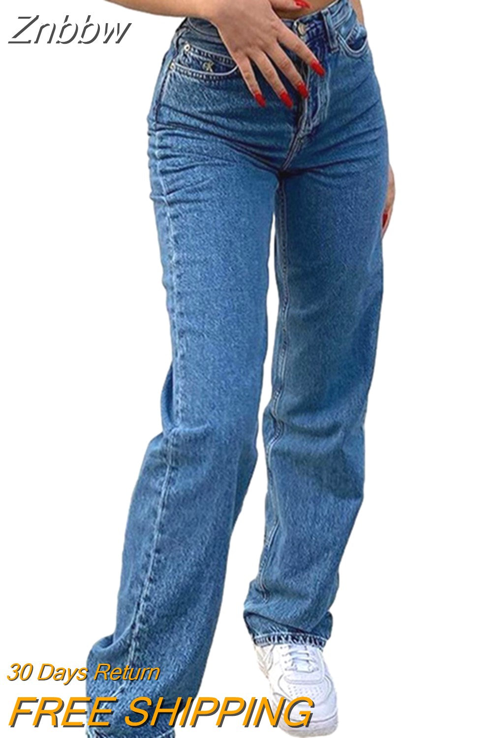 Znbbw Print Straight Denim Pants Jeans Women High Waist Loose Wide Leg Pant Streetwear 2023 Fashion Casual Trousers