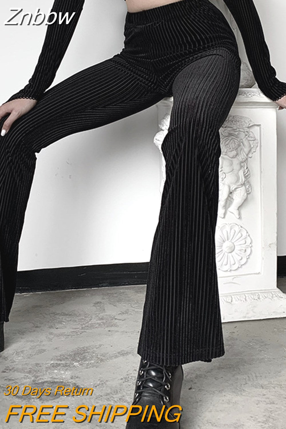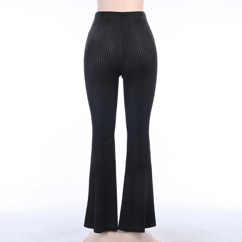 Znbbw Ribbed Black High Waist Slim Fitted Skinny Long Flare Pants Women 2023 Spring Autumn Stretchy Trousers Streetwear